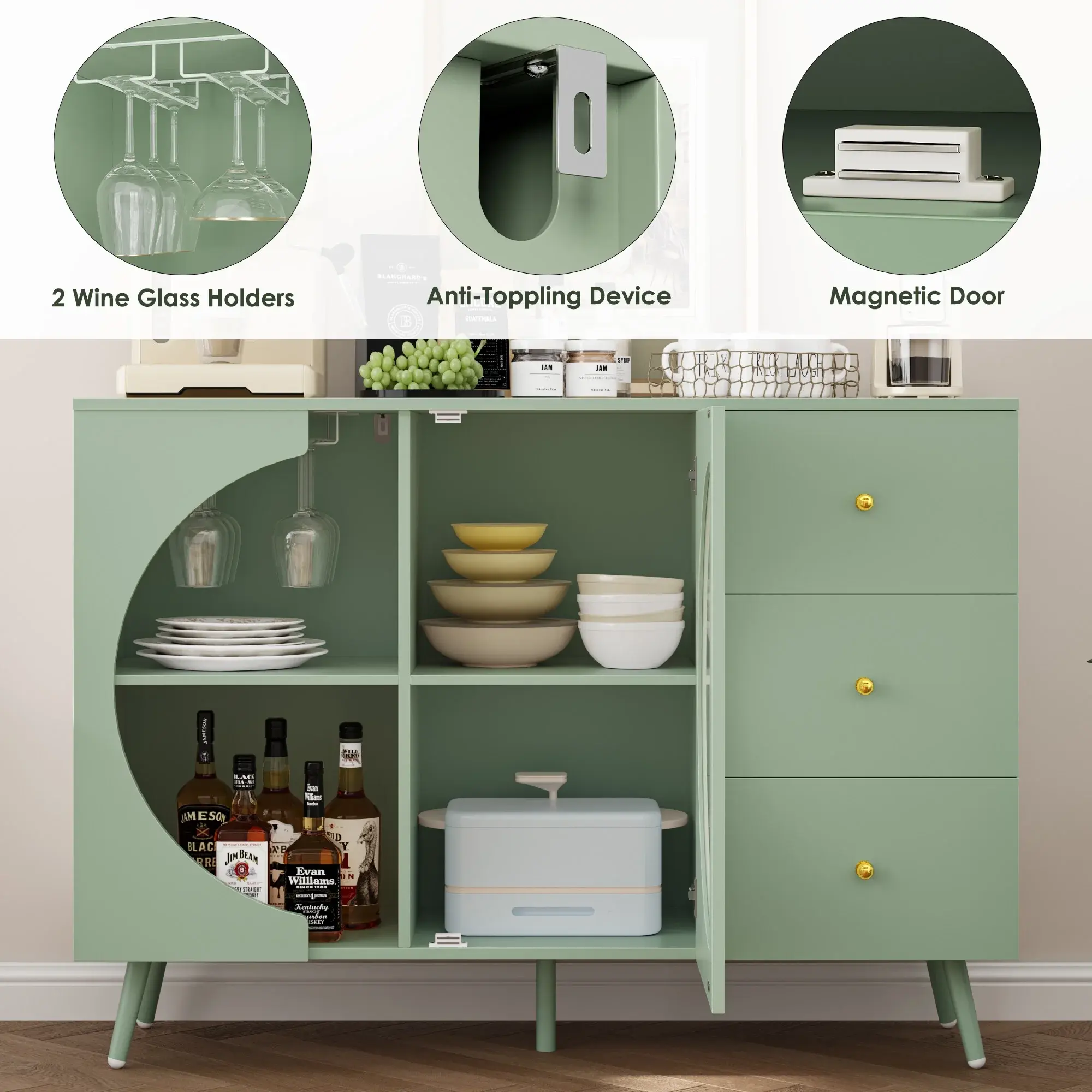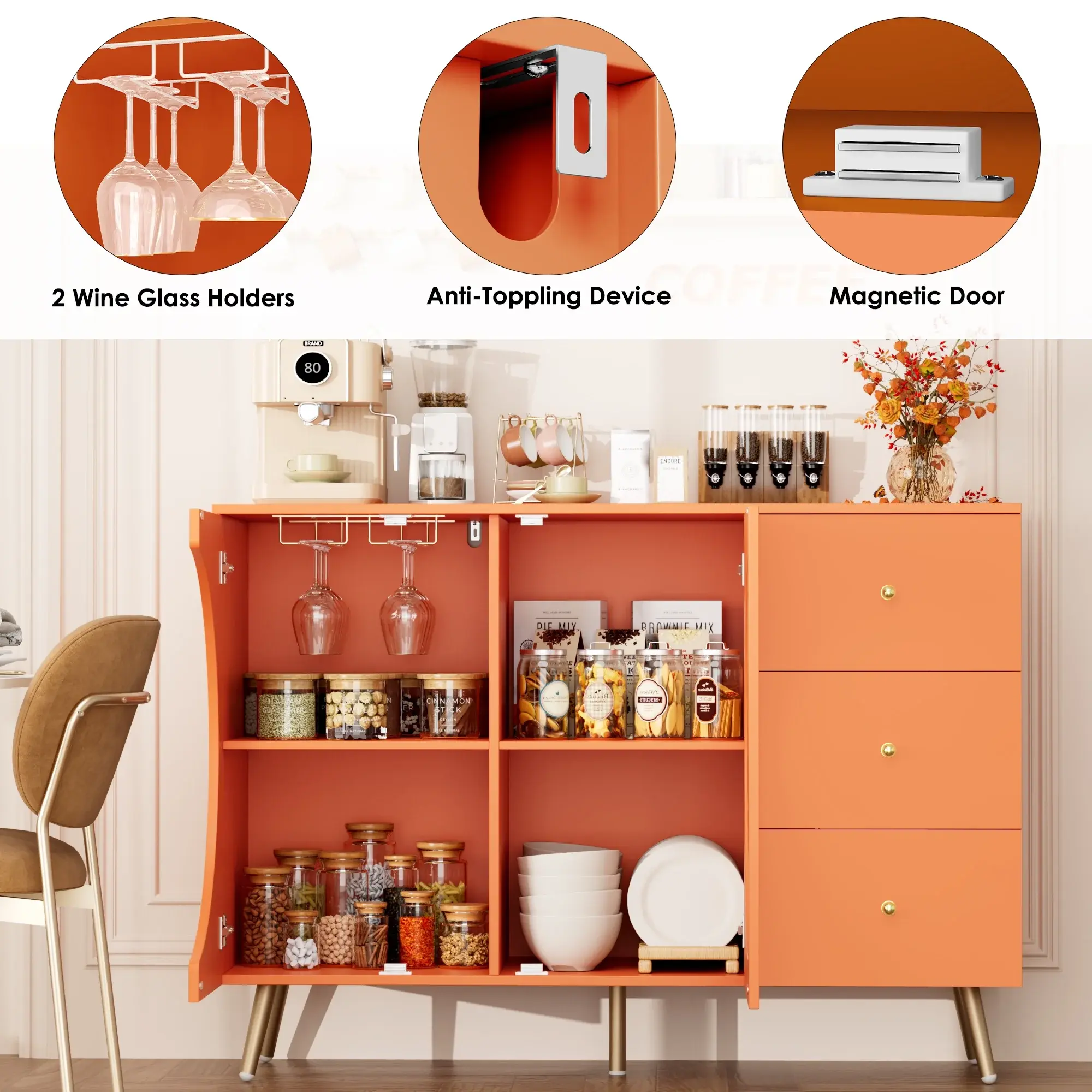 Versatile for Any Room – Ideal as a coffee station, wine bar, kitchen storage, or entryway console.