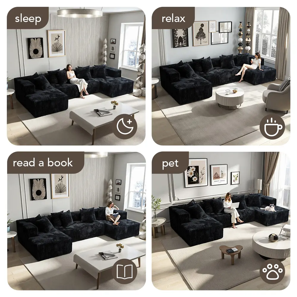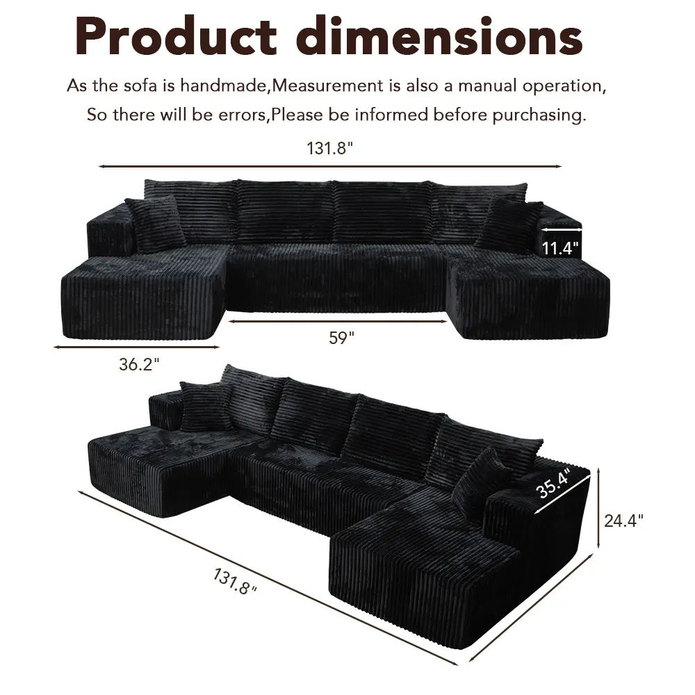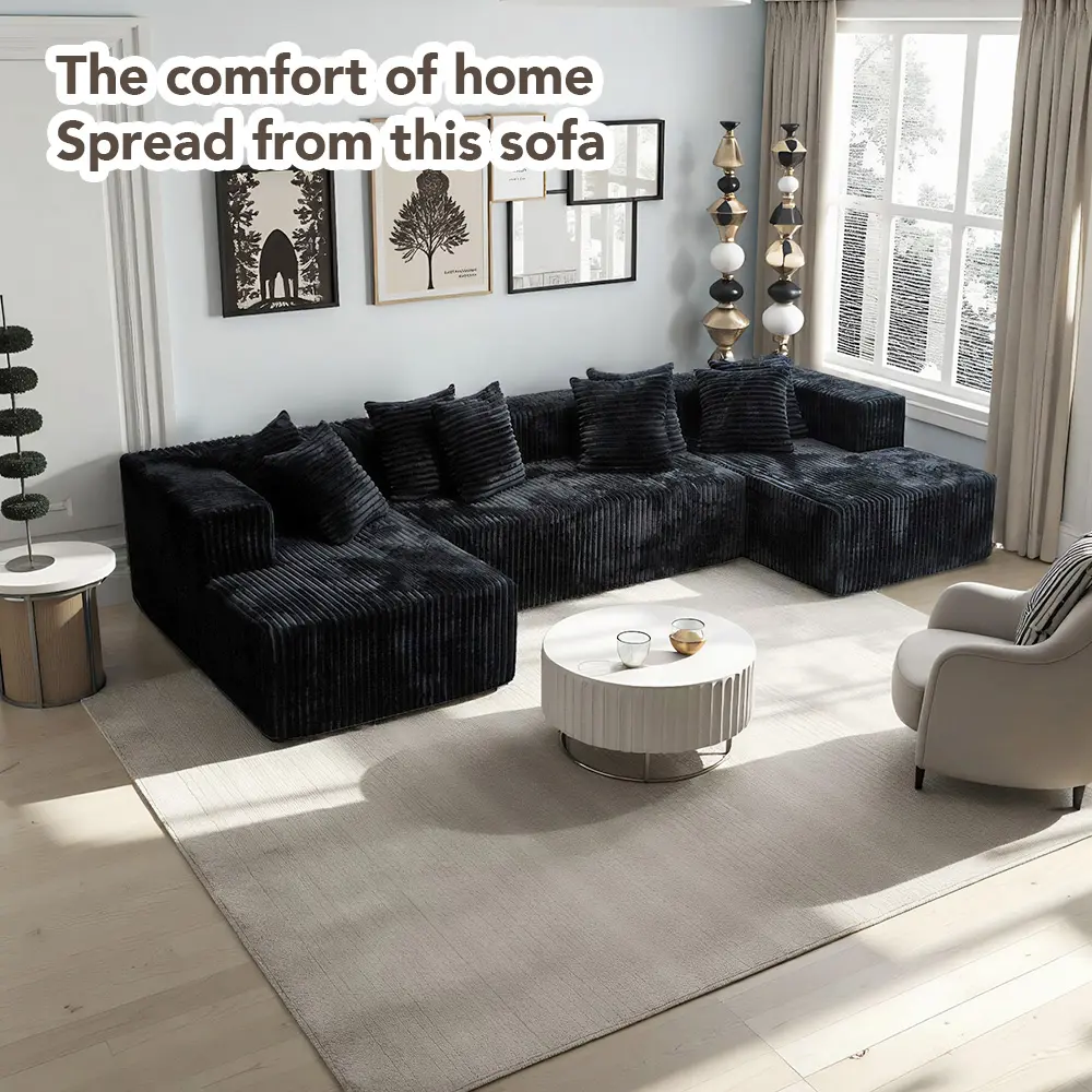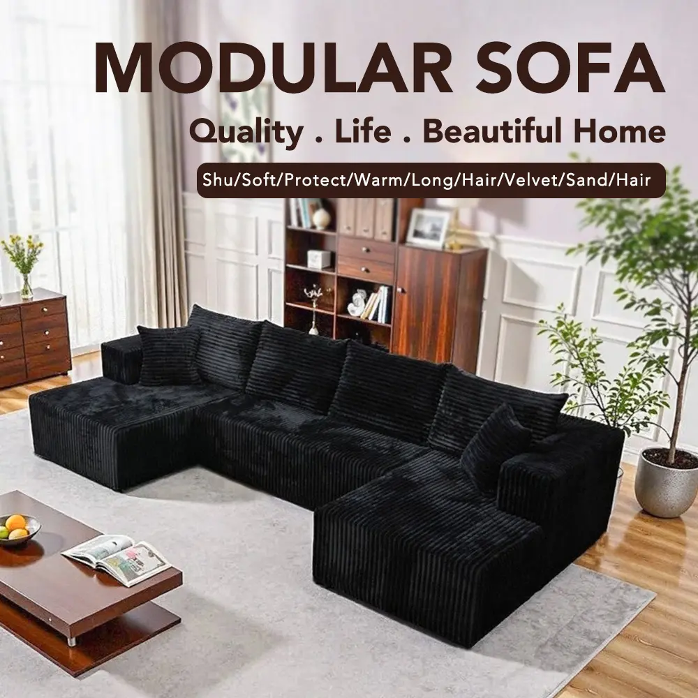 132'' U-shape Modular Corduroy Sofa Modern Living Room Comfortable No Assembly Needed Popular Boneless Sectional Couch Loveseat Couch Sleek boneless sectional couch bean bags furniture living room