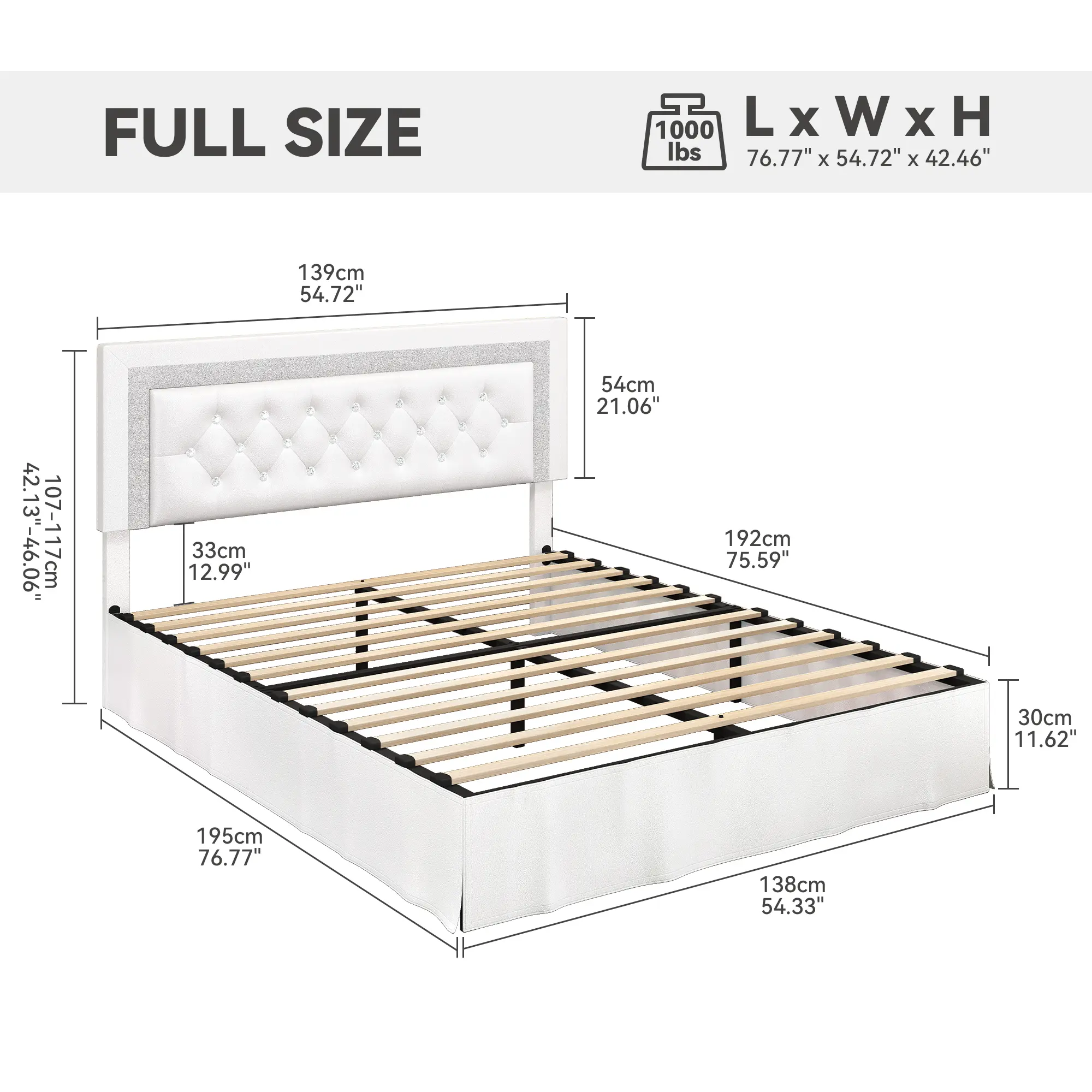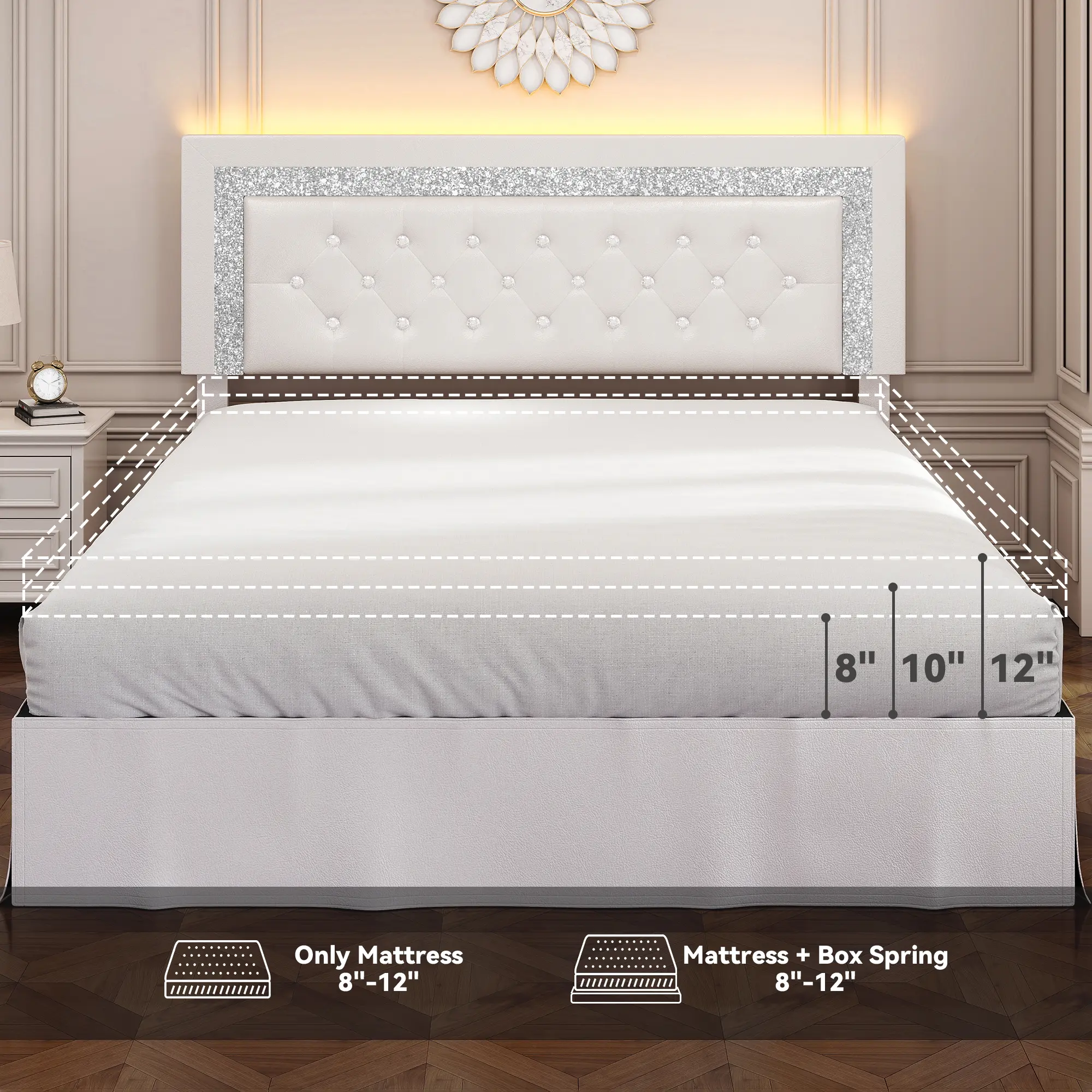 Designed with 3 adjustable height modes, the soft padded headboard can accommodate various mattress thicknesses (recommended 8"–12"), ensuring the perfect fit and comfortable support. Mattress not included.