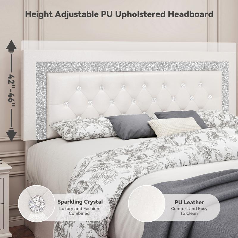 A: Yes, the headboard can be adjusted between 42" and 46" to accommodate different mattress heights (recommended 8"–12").