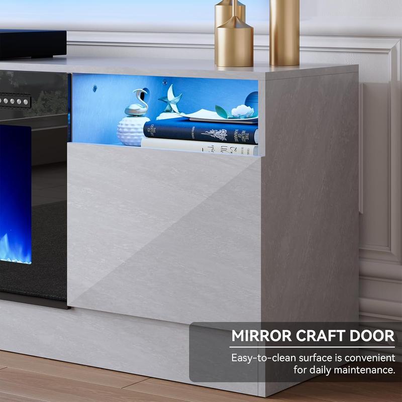Elevate your entertainment setup with the oneinmil 70" TV Stand. This modern media center features a 36" electric fireplace, perfect for cozy evenings. The stand includes a large storage cabinet in white and black, offering ample space for your essentials.