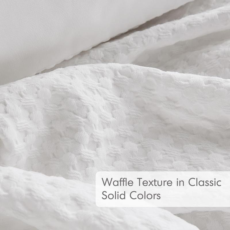 Transform your bedroom with our luxurious textured dotted-weave bedding. This extra fluffy comforter set contains lightweight polyester filling, maintaining a comfortable temperature for any season. Enjoy warm nights in winter and cool, breathable comfort in summer. It's the ticket to a quality sleep experience. Crafted from premium polyester fabric, it's machine washable and resistant to fading, shrinking, and seam issues.