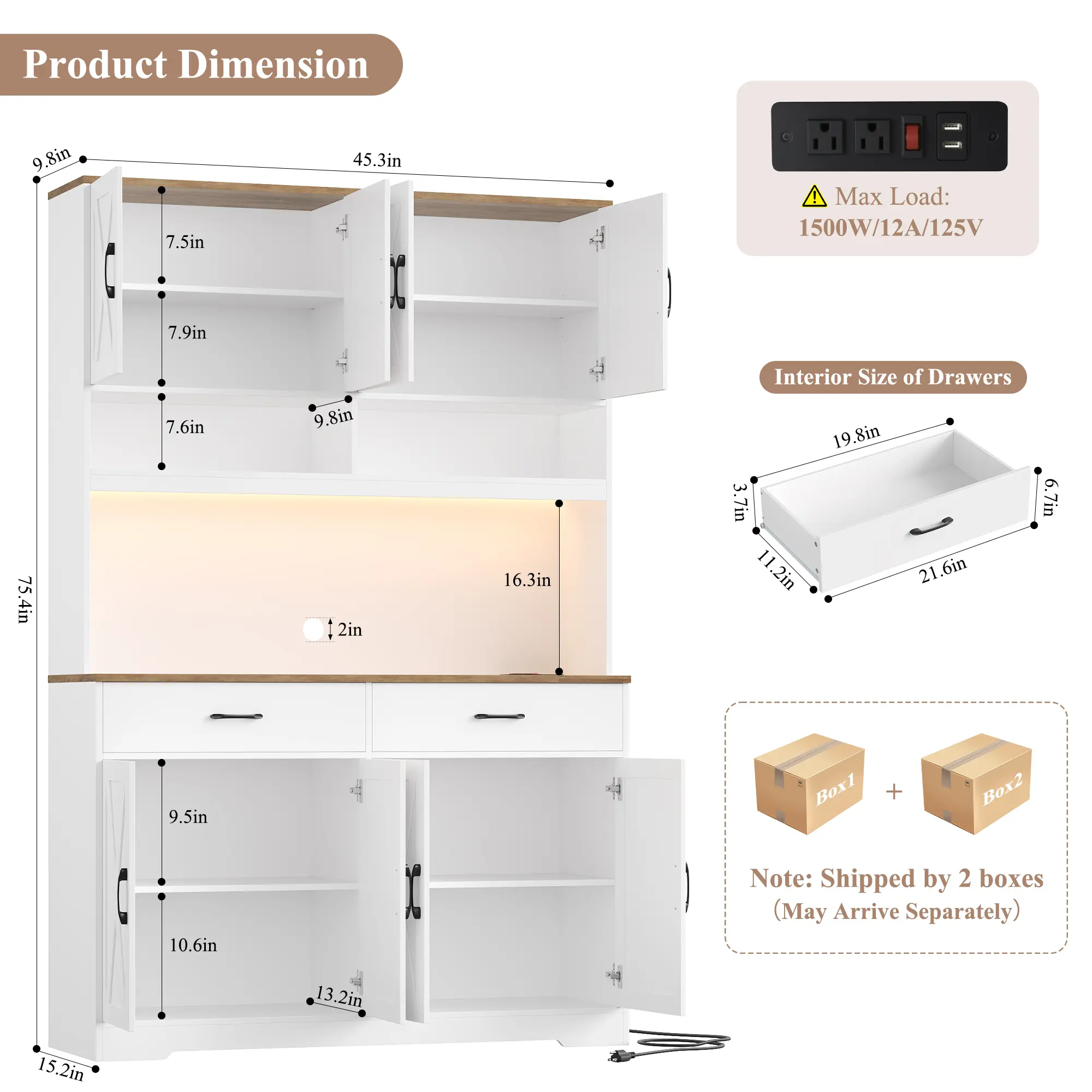 ·Overall Dimension: 45.28"W x 15.16"D x 75.39"H