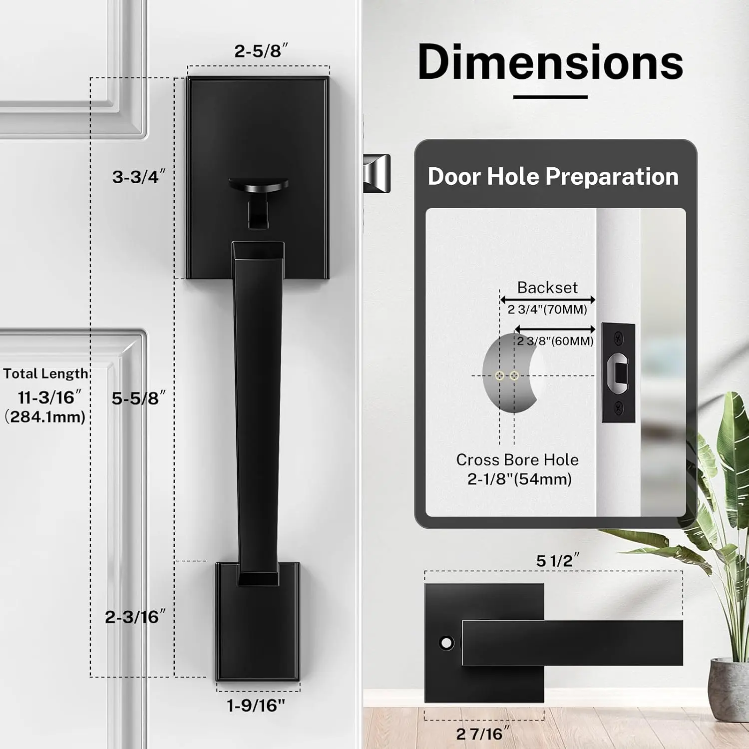 ·Universal Latch: Adapts to standard doors with 2-3/8” or 2-3/4” backset.