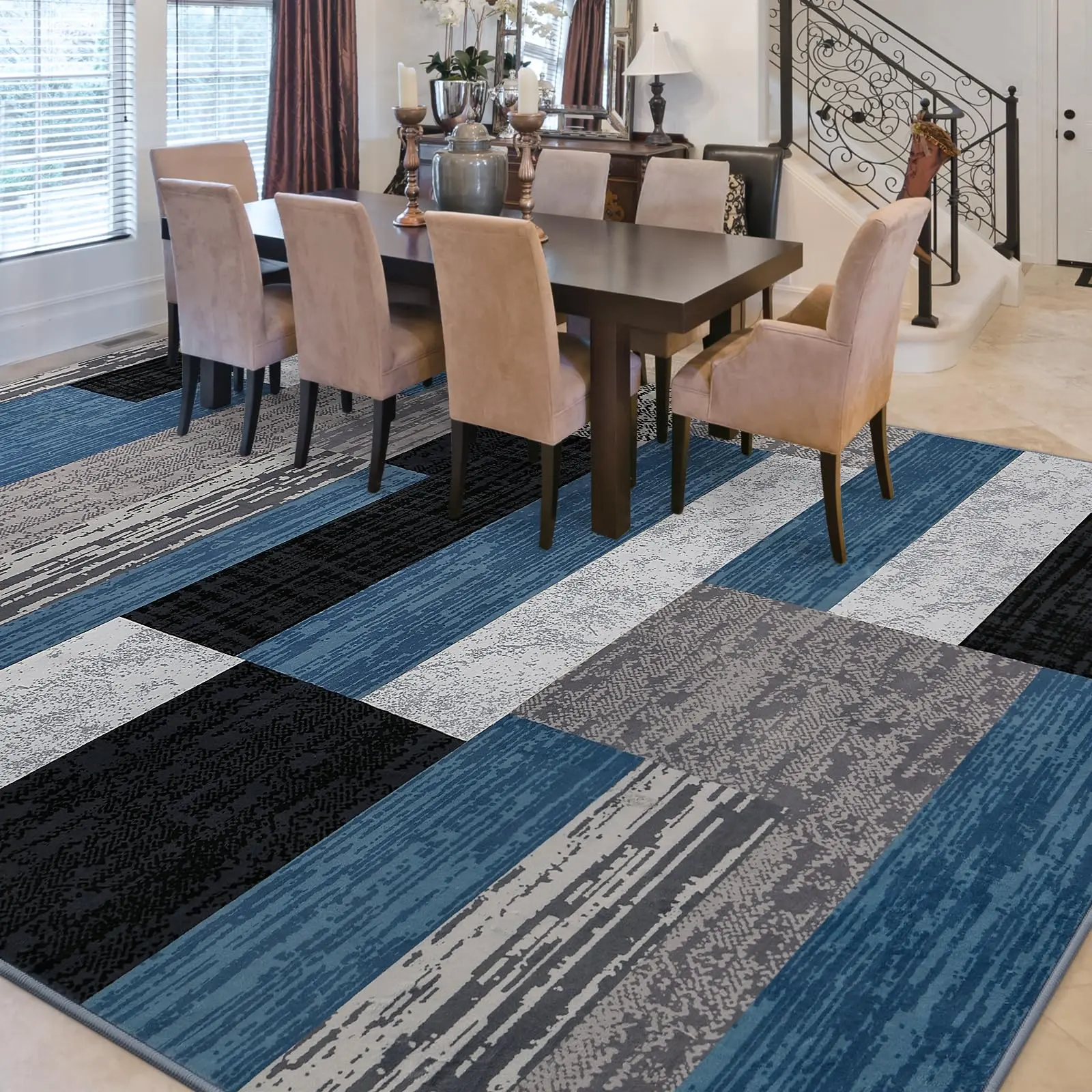·Non-Slip TPR Design: The back of the large area rug features an upgraded version of a TPR material, which significantly enhances the friction between the carpet and the floor, ensuring stability. Therefore, it is highly suitable for high-traffic areas such as living rooms, hallways, or dining areas