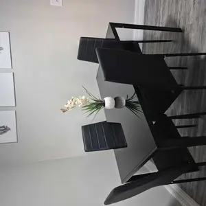 ·Well-Designed Seating: The 4-person dining set includes a dining table and 4 cushioned chairs with a streamlined backrest that fits the natural curve of your spine. The seat is padded with soft foam and covered with PU leather, providing a comfortable and supportive experience so you can enjoy every meal.