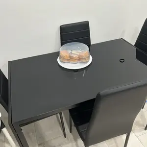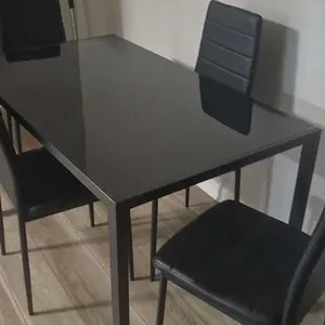 Muy bonito me encantó la calidad es buena además súper práctico para armar la calidad del material es muy bueno resistente está perfecto para una familia de cuatro personas y para espacios pequeños como departamentos es ideal el vidrio es templado un negro muy bonito combina con cualquier color en l