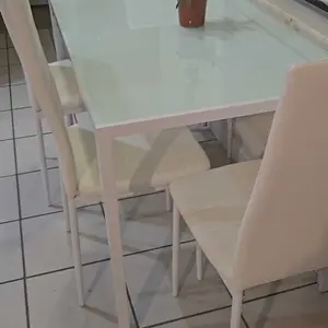 ·Easy to Maintain: This 5-piece dining table and chair set features a stylish glass tabletop. The smooth surface makes it easy to clean up after food spills. Just wipe it with clean water to restore it to a clean state, making it easy to keep the tabletop bright and beautiful.