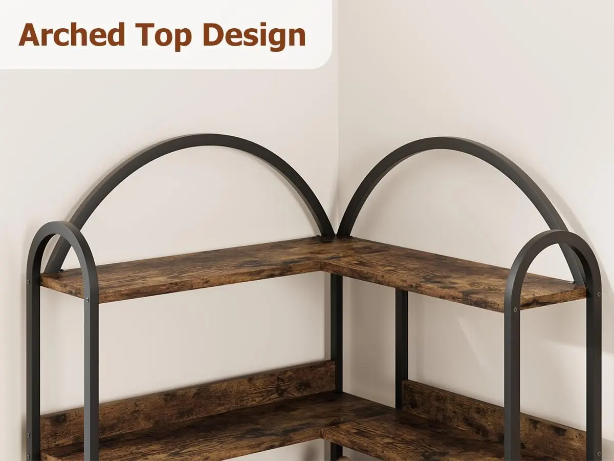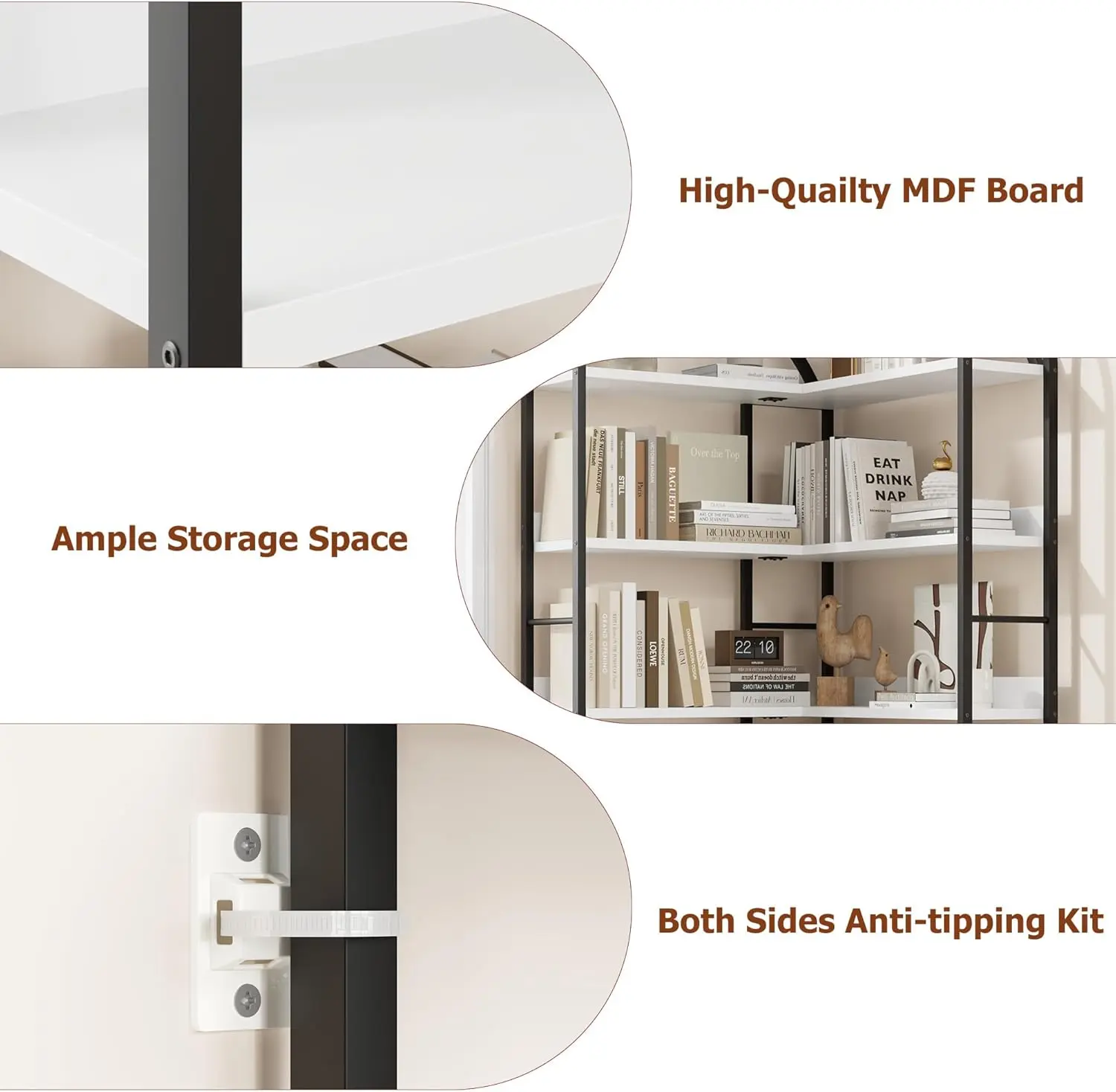 【Space-Saving Corner Design】This 90° L-shaped corner bookshelf maximizes unused corner space while bringing a modern industrial style and functional display area to your living room, bedroom, home office or workspace.