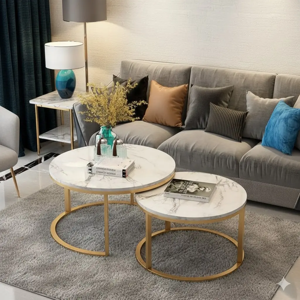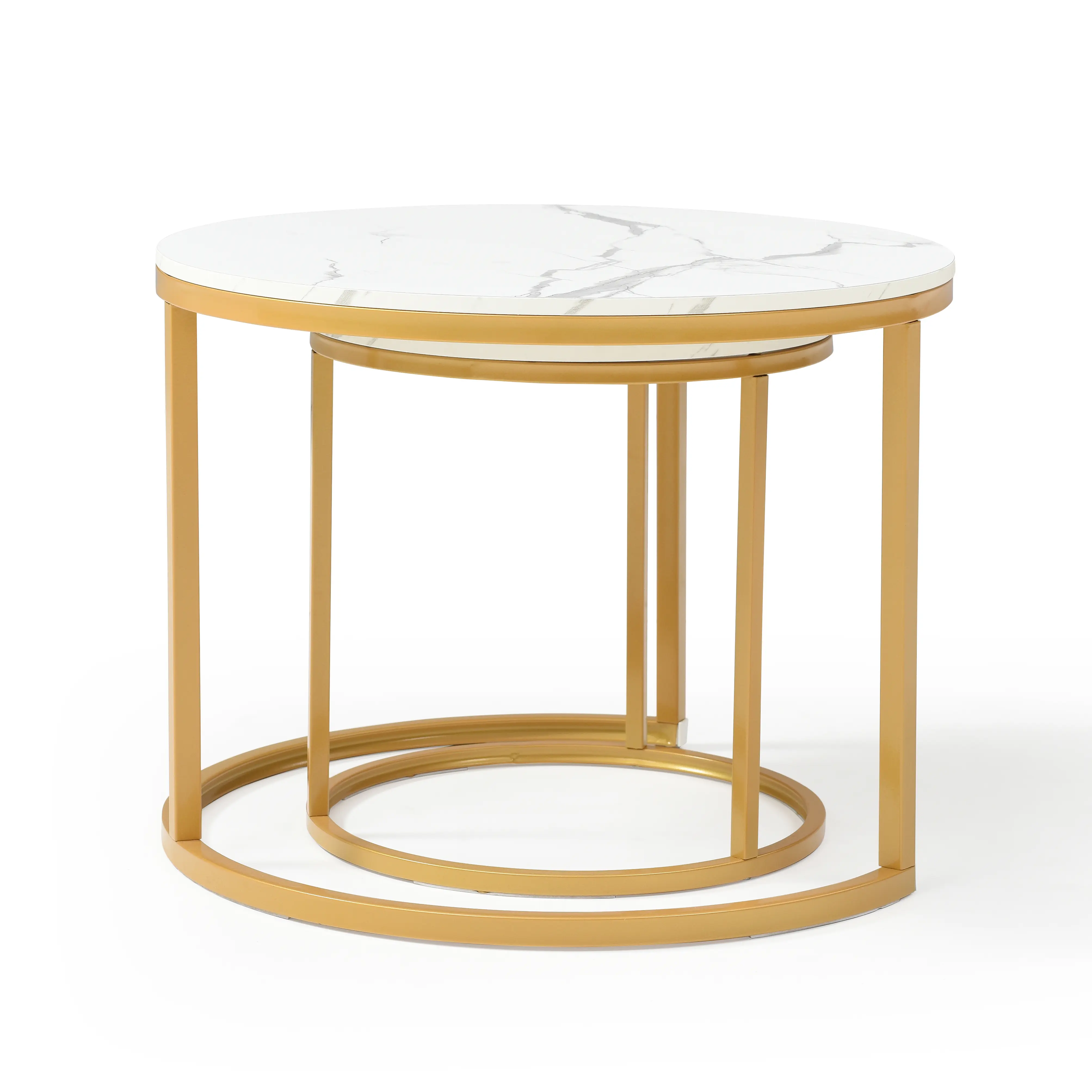Holiday Special 2-Piece Nesting Coffee Table Set – Marble Round Top, Space-Saving Stackable Design, Sturdy MDF & Metal Frame, Easy Assembly for Living Room Bedroom