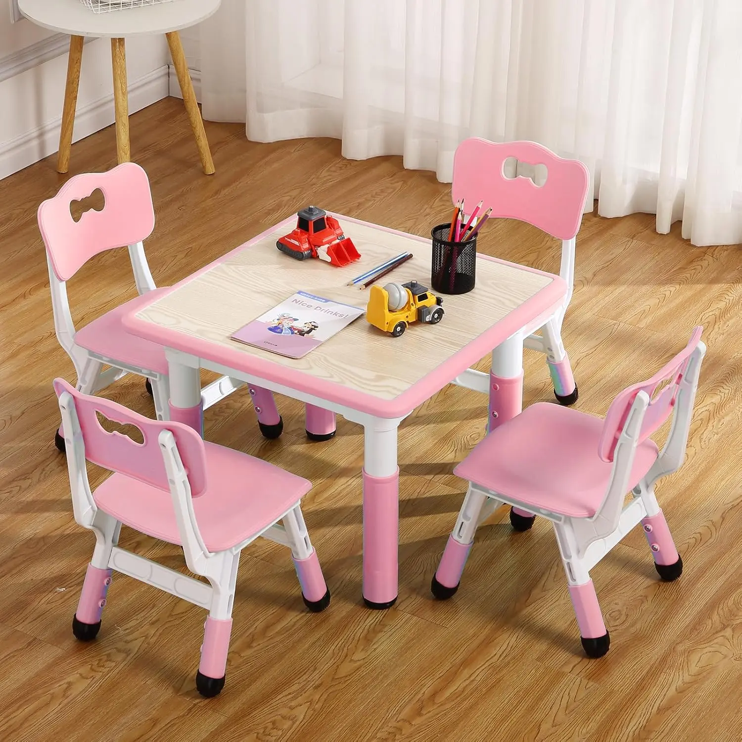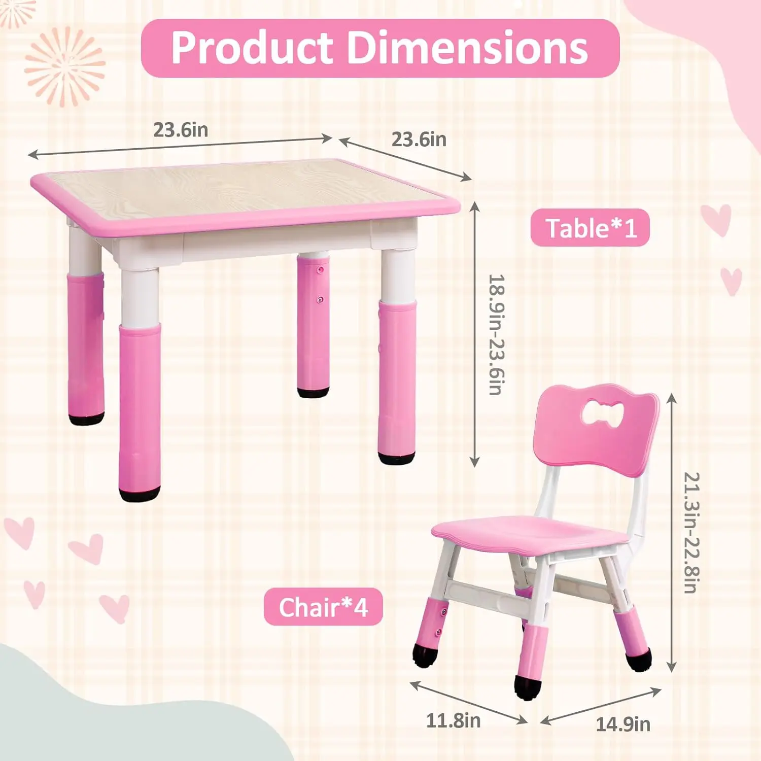 🎗️【Reliable Service & Easy To Care】 Come with clear and illustrated instructions and it won't take long time to assemble the kids table chair set. With the user manual, parents can learn each installation step and easily complete the installation.If there is any questions about this height adjustable table and 4 chairs set for kids , please feel free to reach out to us.