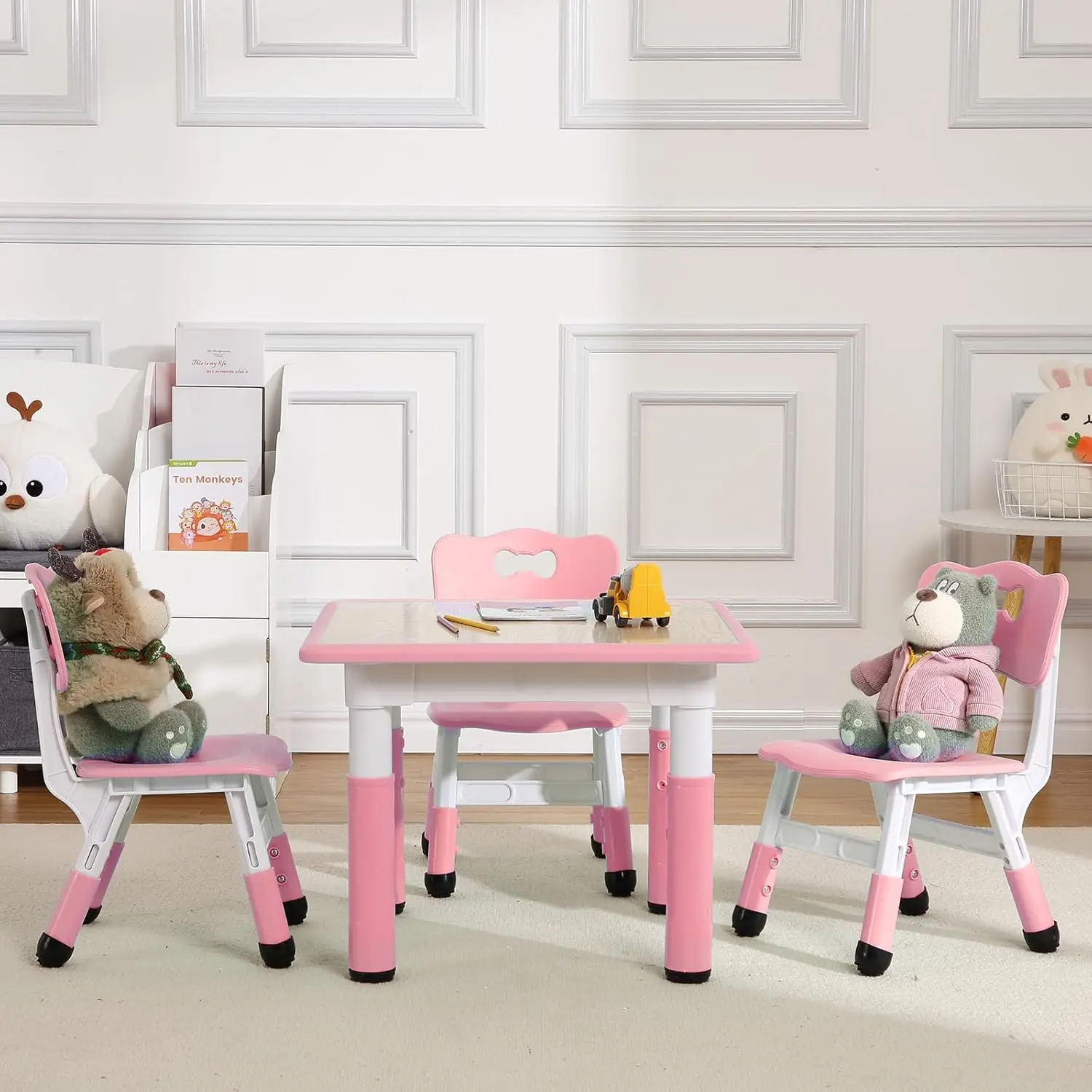 🎗️【Practical Toddler Table】Our toddler table and 4 chairs can add a fun and creative element to playtime,allowing kids to unleash their artistic side.Designed for toddlers and kids between the ages of 2-10, this kids table is also perfect for children to enjoy dining and learning, enhancing their early learning experience and creating a conducive environment for preschool activities!