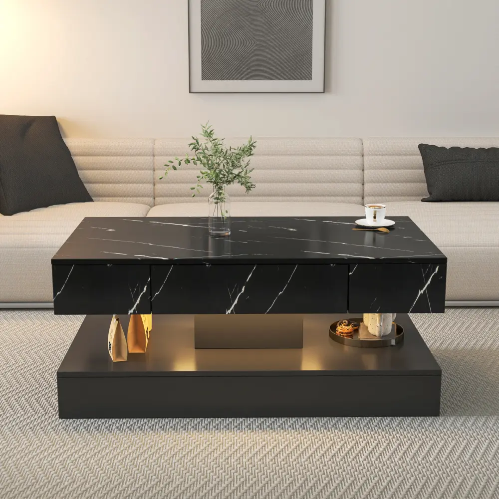 This Black LED Coffee Table features a sleek modern design, functional storage, and built-in RGB lighting to elevate any living room setup. Designed with durable particle board and MDF, this table offers both visual appeal and practical usability — perfect for modern homes, apartments, and offices.