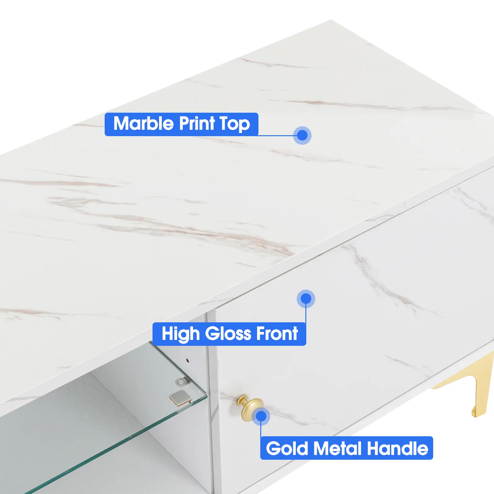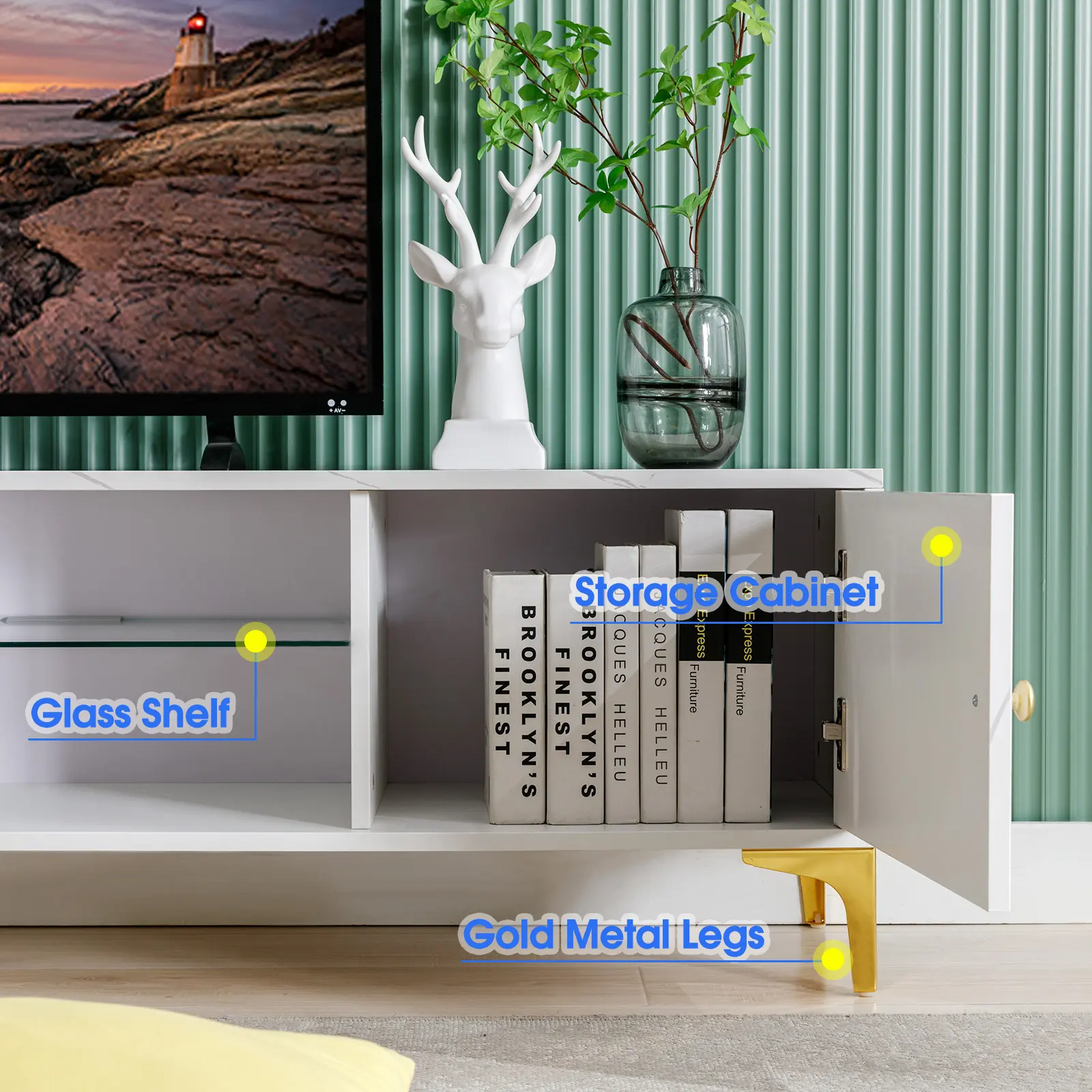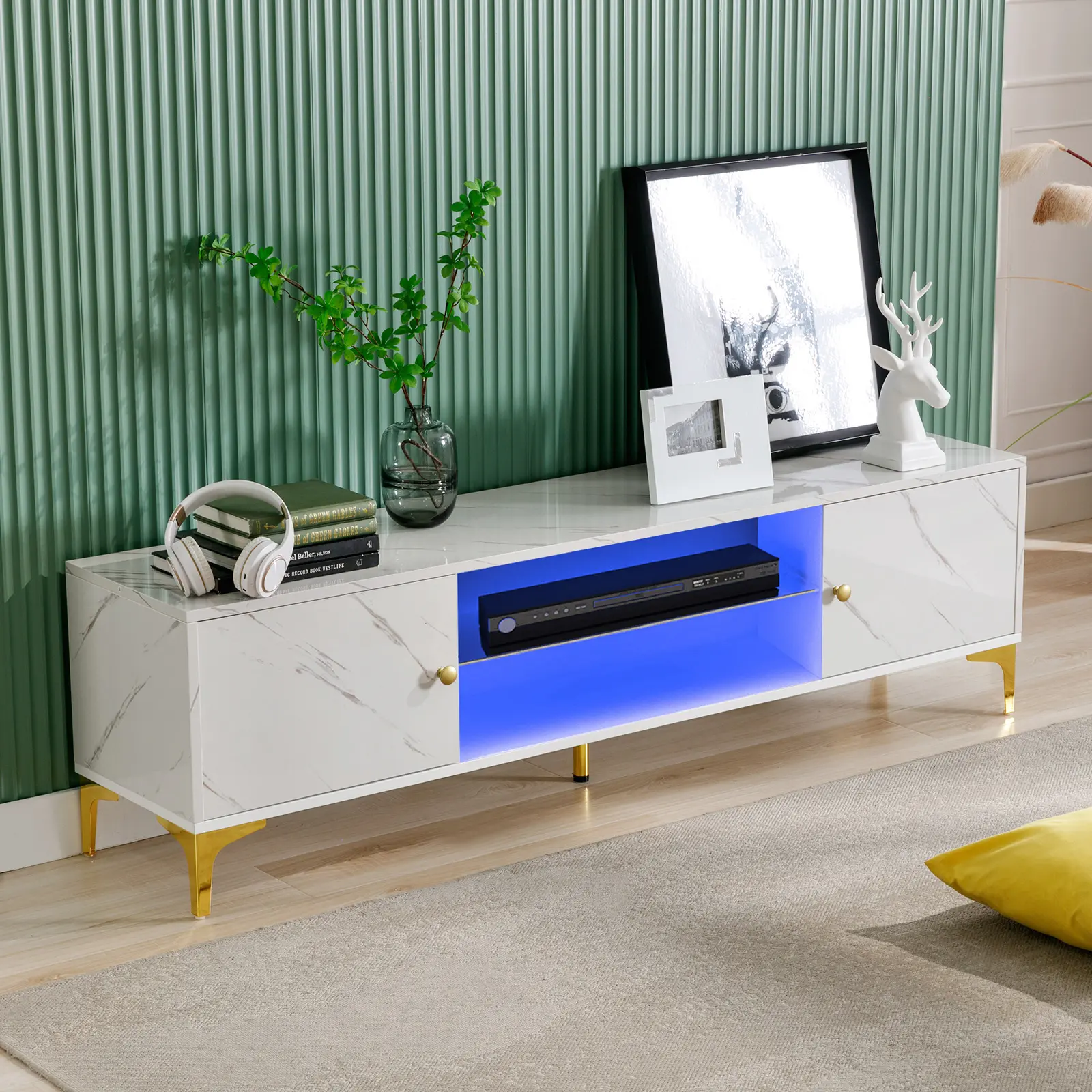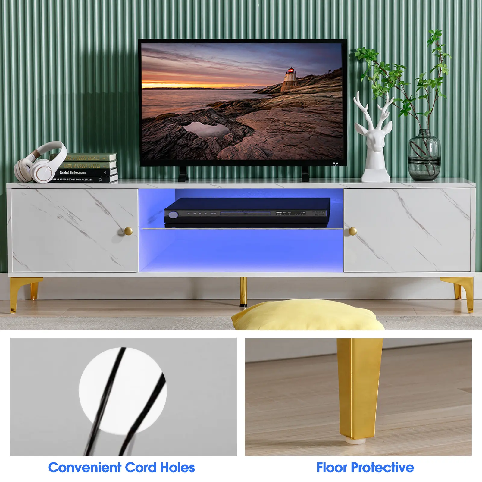 Elevate your entertainment setup with this modern LED TV stand. Designed for 60/65/70 inch TVs, it offers a sleek and functional solution for your living room, bedroom, or game room. This entertainment center features a storage cabinet and an open shelf, providing ample space for your TV and additional essentials.