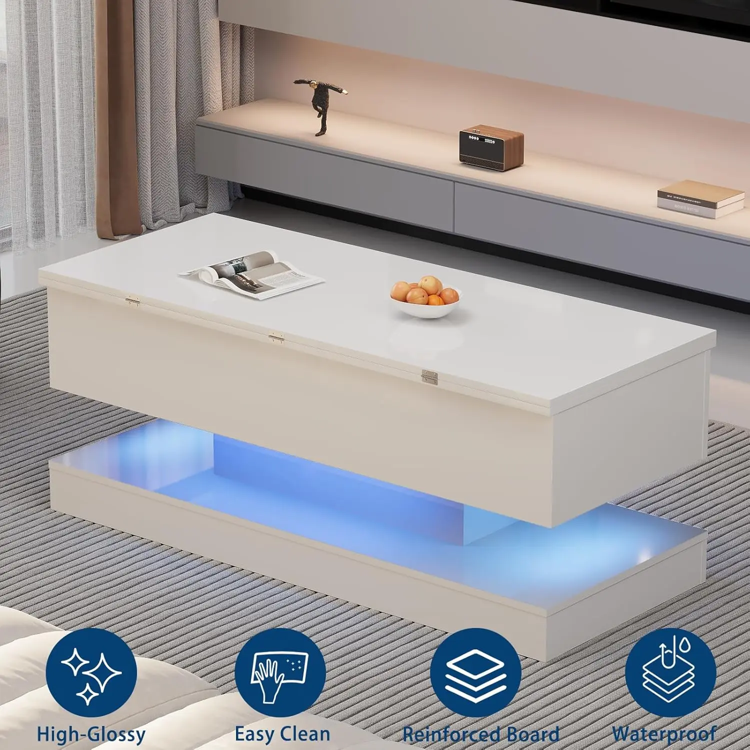High Gloss Scratch Resistant Surface:Made with a waterproof, scratch-resistant high-gloss finish that complements any sofa. The modern design fits both compact and spacious living rooms while maintaining a clean appearance.