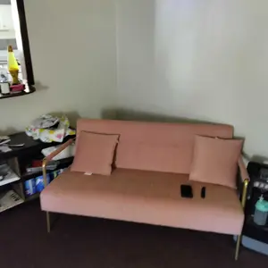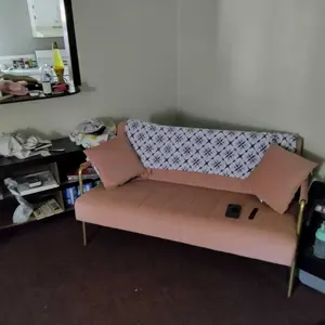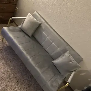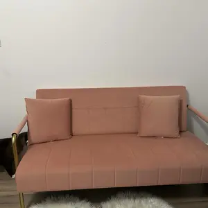 1. 【Simple Structure, Soft Materials】This small loveseat is crafted with a solid wood & manufactured wood frame, supported by sturdy, streamlined iron arms & legs, bringing exceptional stability without the bulk. The futon is finished in lush velvet fabric, giving you excellent comfort and smoothness.