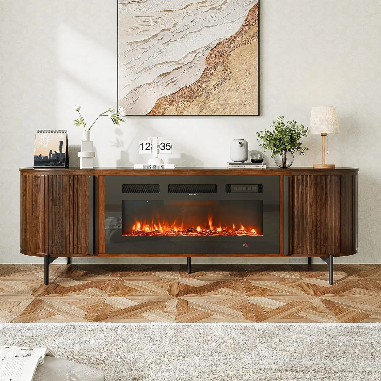 Our Oak 70 TV stand with Black fireplace is designed with cable holes for wire organization. Gold metal cylindrical legs add a contemporary vibe, creating a personalized and distinctive aesthetic. 🌟