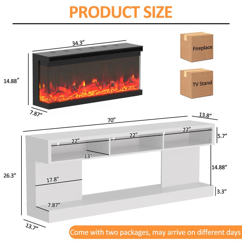 ·TWO Packages: The product comes with a clear introduction and the hardware needed for installation, with which you can easily assemble it. Please note that to ensure the safety of the fireplace TV cabinet, the items will be delivered in 2 parcels and may not arrive on the same day.
