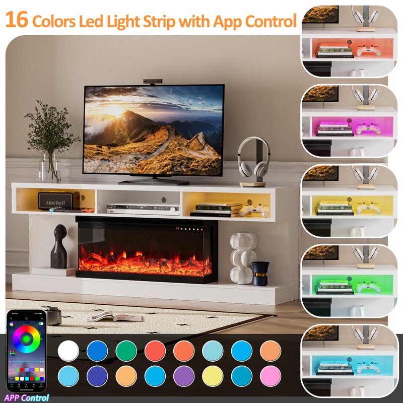 ·Smart APP controlled light strip: This modern TV cabinet electric fireplace is equipped with an upgraded smart light strip. The LED light strip can control the RGB light through the mobile phone APP, with more than 3 sound-changing light modes, which can customize the space and atmosphere. No need to worry about finding the remote control anymore!