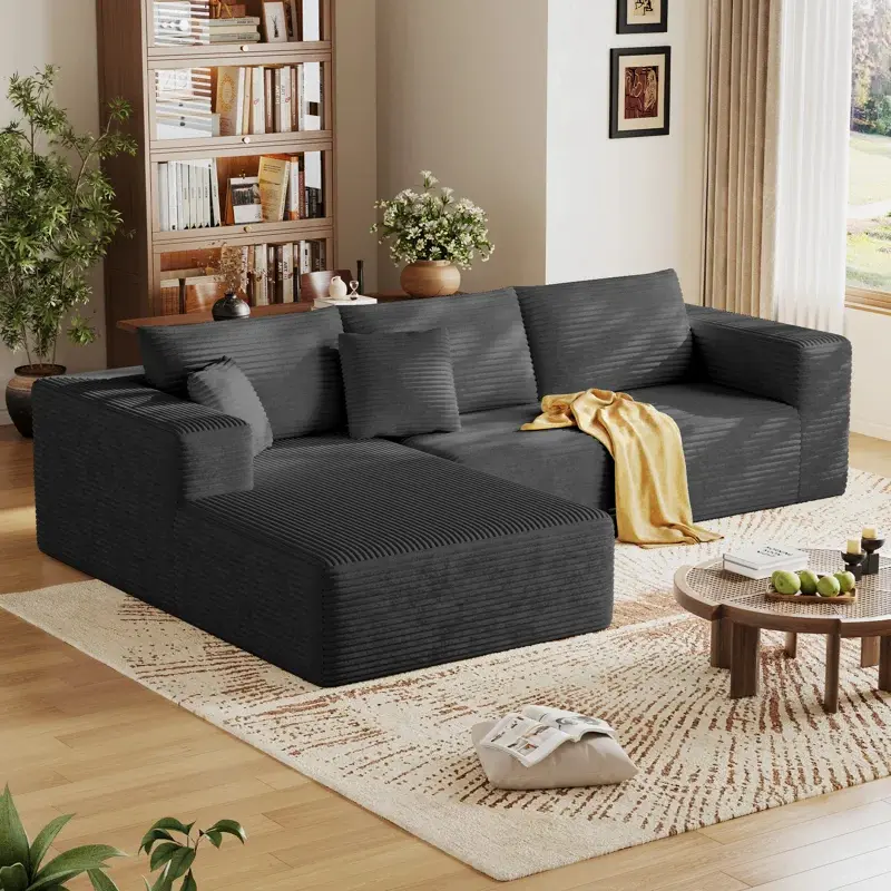 106” Modular Sectional Cloud Sofa for Living Room Modern Minimalist couch with L-Shaped Chaise Upholstered Corduroy Couch , Deep Seat, No Assembly Required