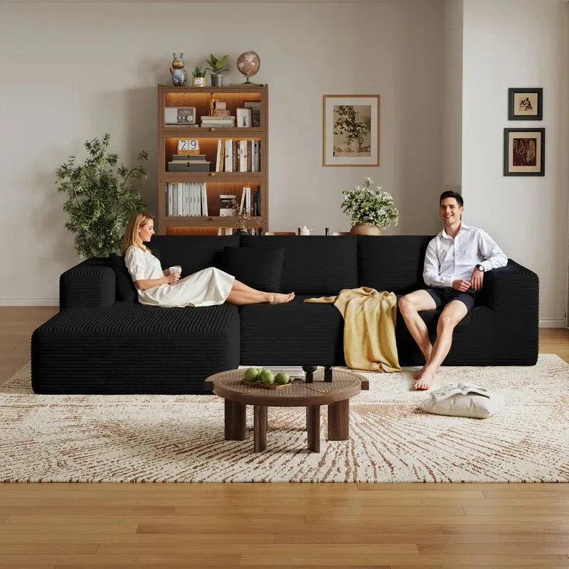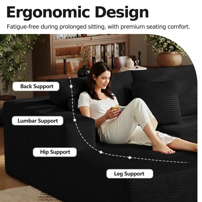 ·【Corduroy Cloud Touch】Our modern modular sofa selected encrypted corduroy fabric, feel like clouds as delicate skin, 3D three-dimensional texture anti-wrinkle wear; Embedded high resilience sponge core, sedentary without collapse, both lazy wrap feeling and strong support, a variety of colors for a variety of home styles.