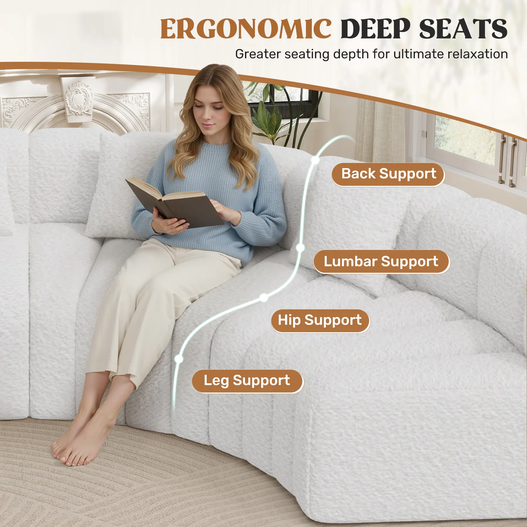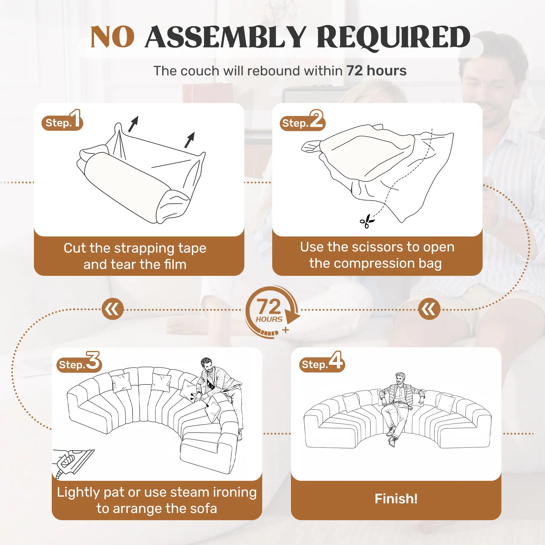 ·NO ASSEMBLY REQUIRED: Say goodbye to furniture assembly nightmares with our modular cloud couch! Simply unpack, lightly pat the pieces, and allow the couch to regain its full shape within 72 hours. Enjoy a hassle-free setup and the immediate comfort of your new sofa!