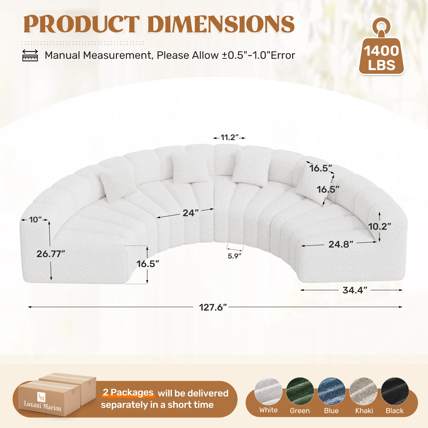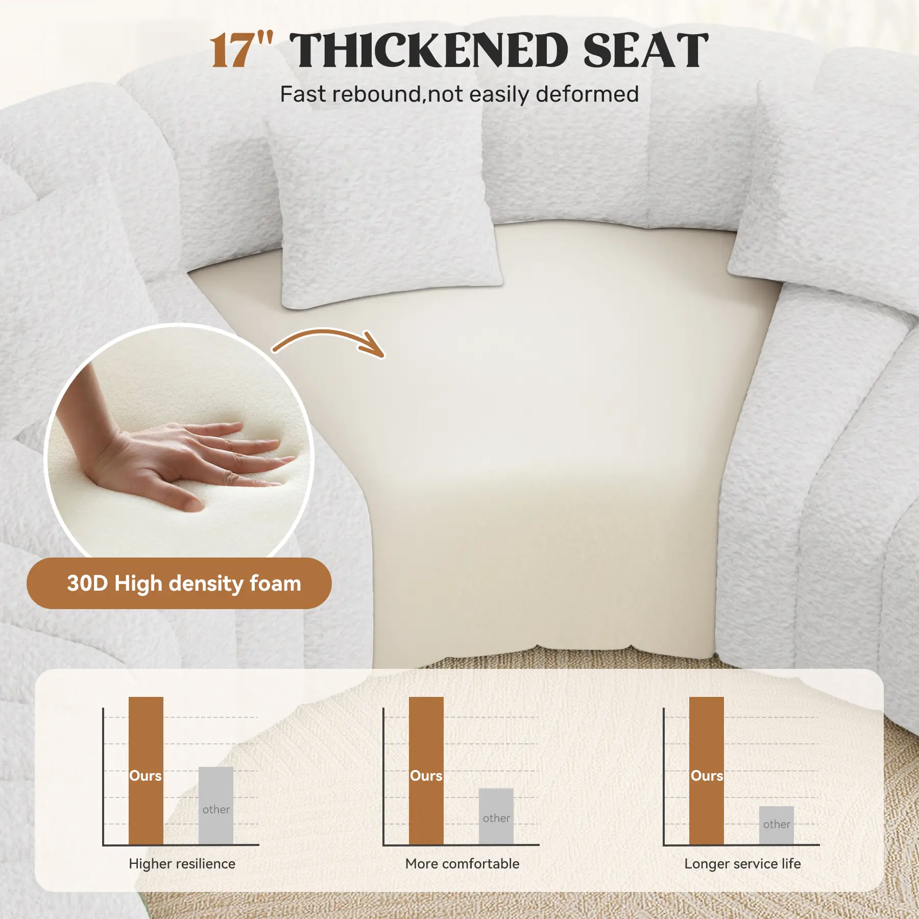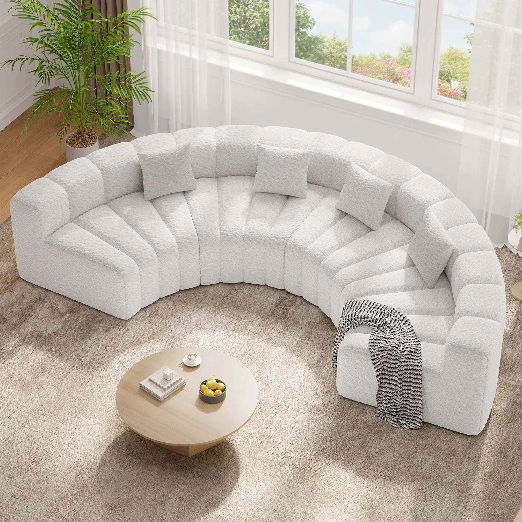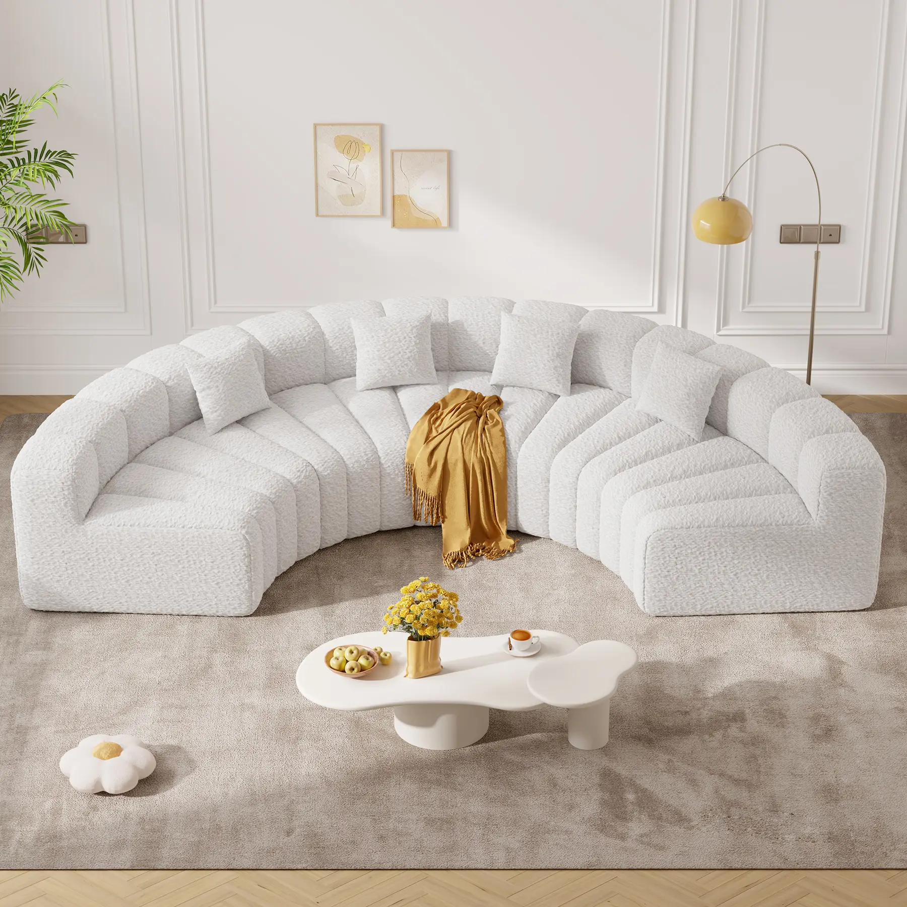 ·DURABLE AND FUNCTIONAL: Crafted entirely with 30D high-density foam, this circle boneless couch provides a secure and comfortable space to sit or lounge with confidence.The foam features fast rebound technology, maintaining its shape while providing plush yet firm seating.Perfect for those seeking curved sofas for living rooms, this round couch combines style, comfort, and long-term reliability. Say goodbye to squeaky frames and hello to pure comfort
