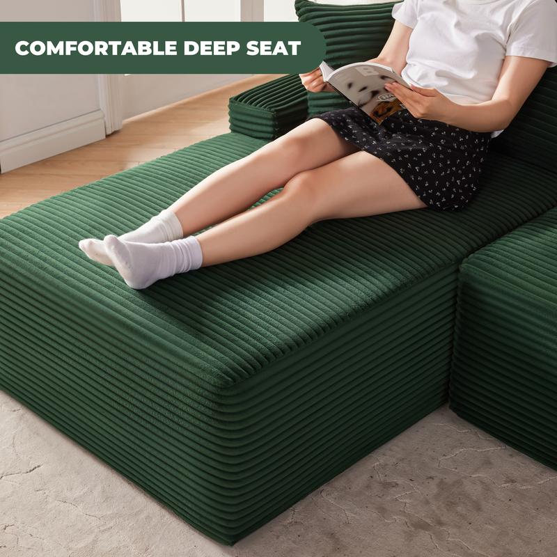 ·Soft Corduroy Fabric: Upholstered in smooth, breathable corduroy, this Cloud Sectional Couch features an L-shaped chaise sofa design that blends comfort with quiet elegance. The fine ribbed texture adds visual warmth and provides a luxuriously soft, inviting seating experience