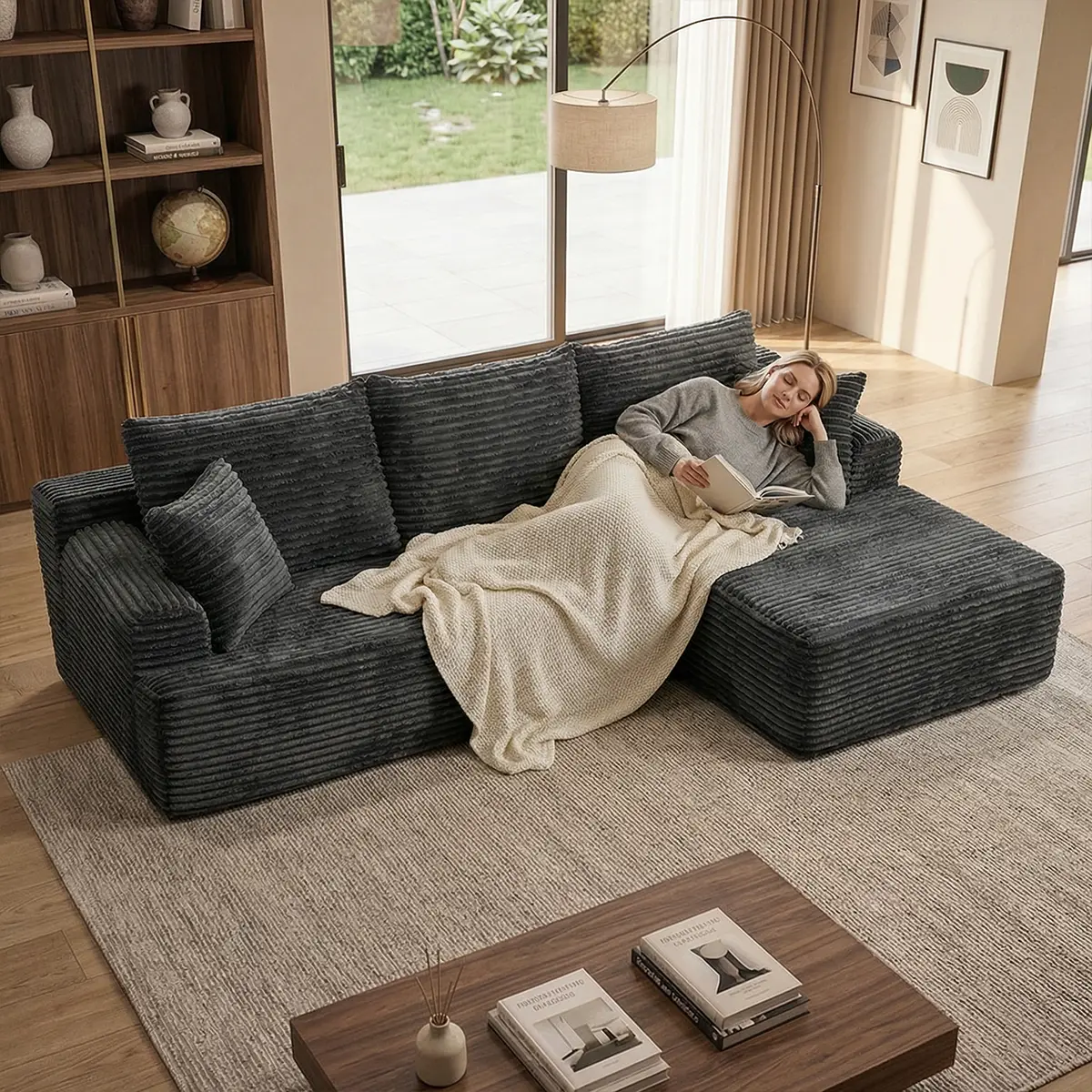 95-inch L-shaped living room design, comfortable and ready to use without assembly. Modern modular s x ofa, durable and comfortable large sofa. furniture express loungers al seccion a of cloud couches boneless sectional