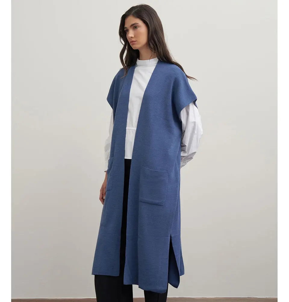 Modern Muslim Women's Pocketed Long Knit Vest - 90016 Indigo
