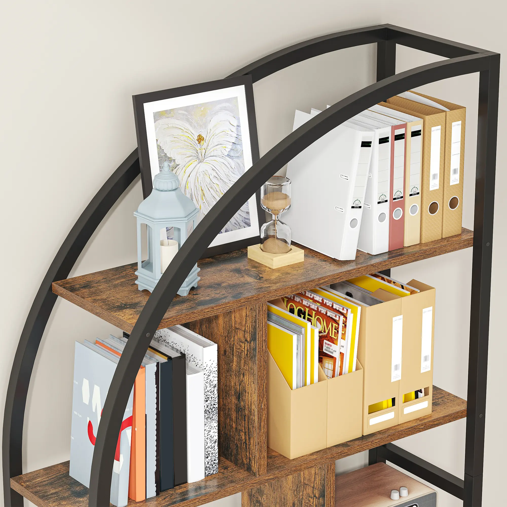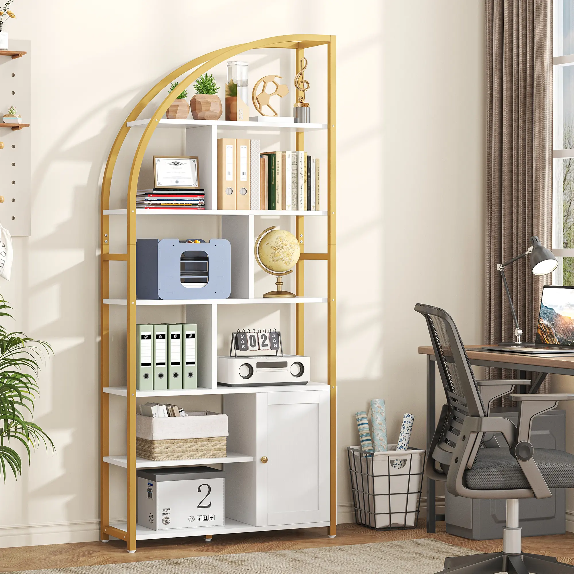 The bookshelf is constructed with a metal frame and engineered board. This ensures stability and durability. The adjustable shelves allow you to customize the layout according to your needs. It's a versatile piece for any office or home setting. 🛠️