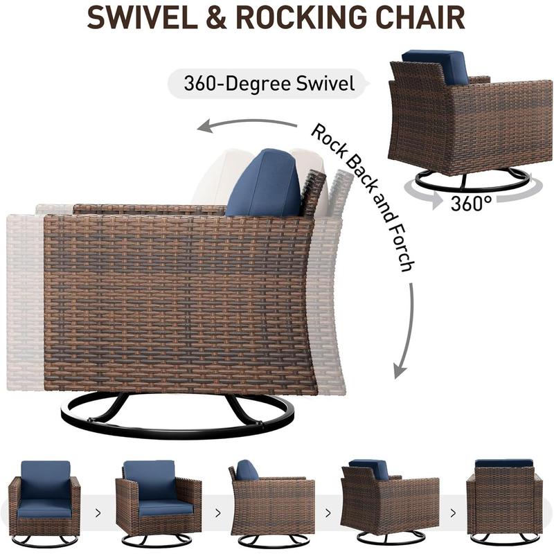360° Swivel Rocking Chair: The unique design allows the patio swivel chairs to rotate 360° and rock back and forth. The 26.7 inch deep seat design provides a more pronounced sense of envelopment and relaxation, while the spacious base ensures its stability, all contributing to your enjoyment of all-around moving fun.