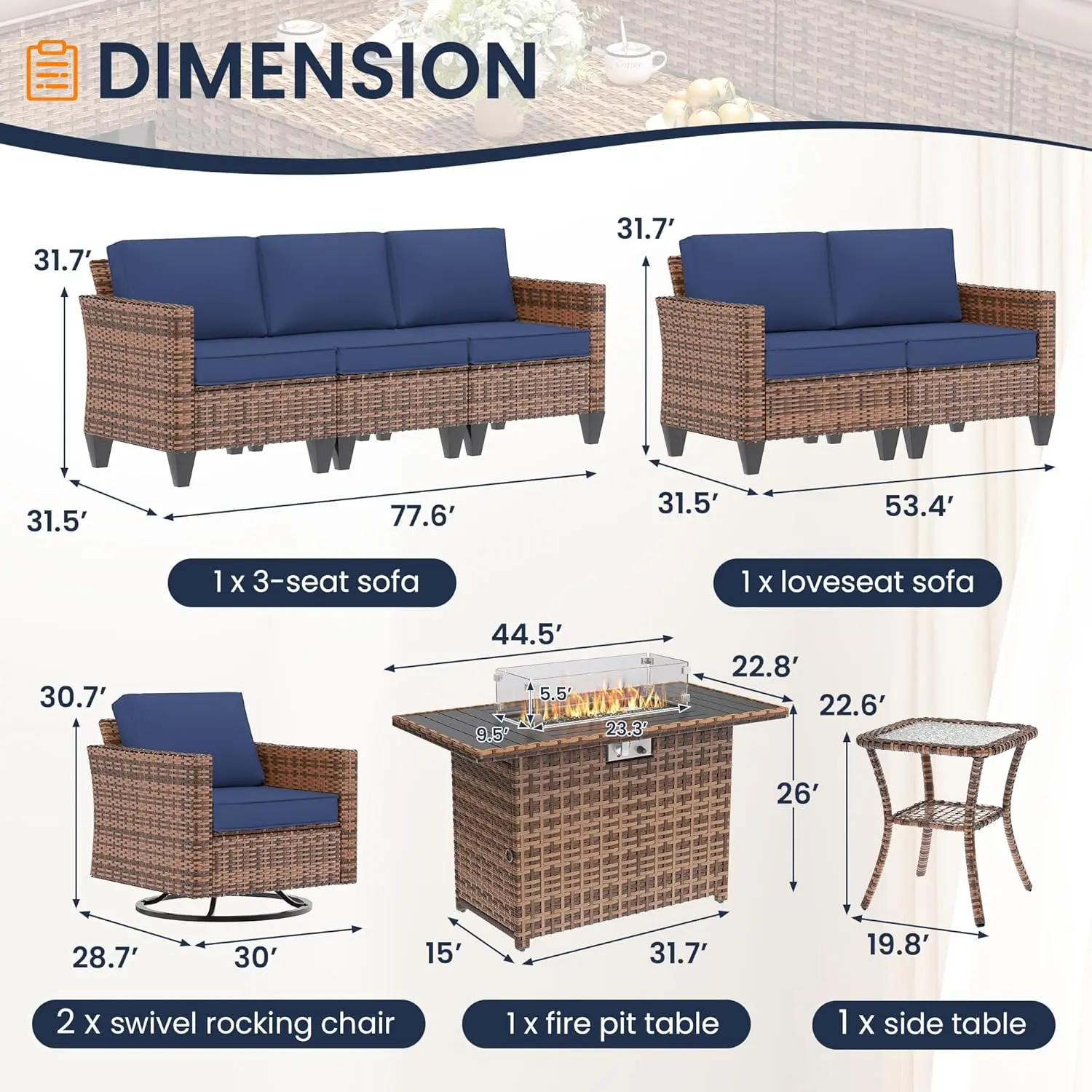 Waterproof Covers for Prolong Survice Life: Each piece in the outdoor patio furniture sets comes with its individual waterproof cover (Except side table), unlike other products that only one large cover.