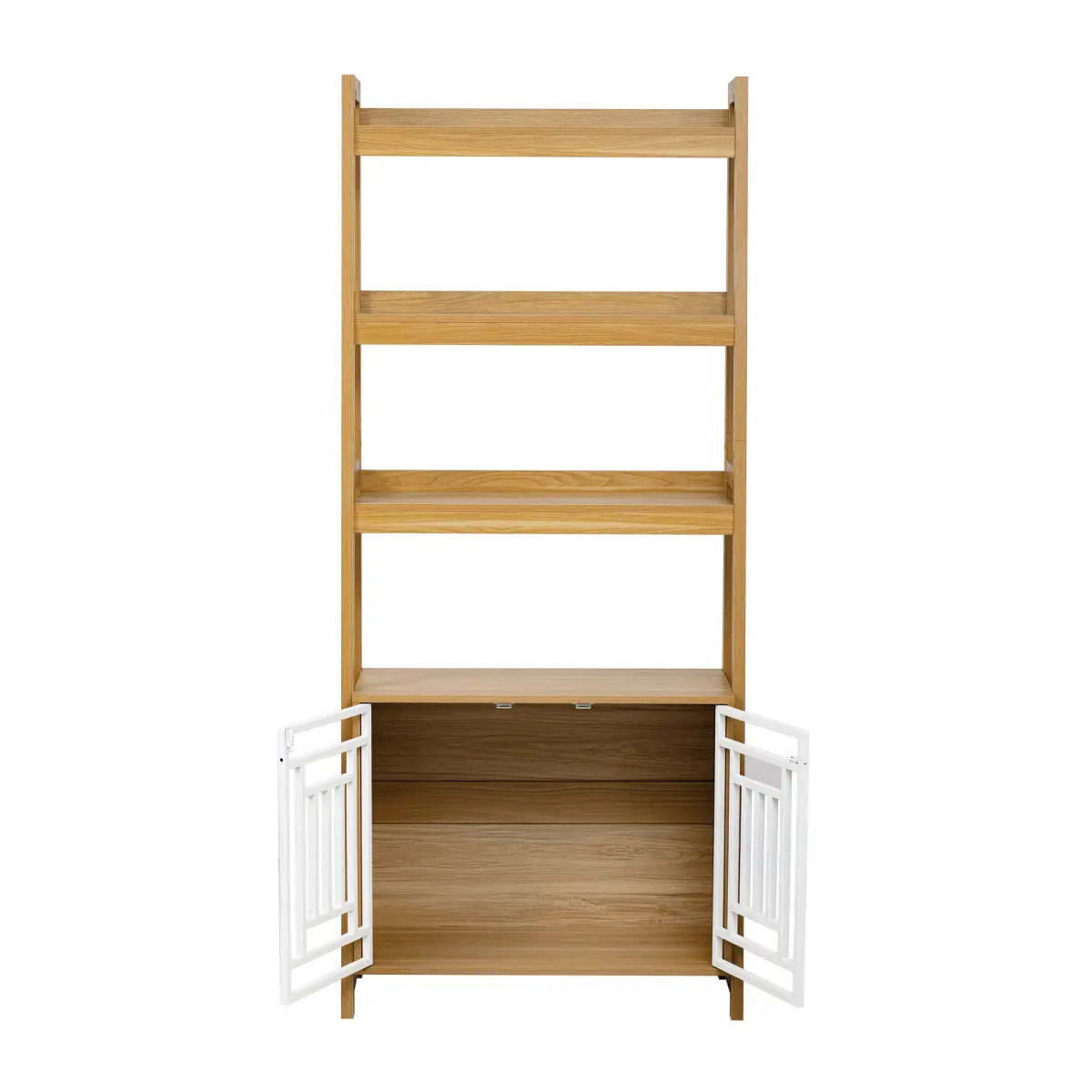 ·Pet - Friendly Function:This bookshelf truly shines as a pet - friendly furniture piece.The multi - functional storage caters to both human and pet needs.The bottom cabinet can easily accommodate a dog cage, providing a dedicated, enclosed space for your furry friend.When the cage is inside, the cabinet doors can be closed to keep the area looking neat, or left open to let your pet come and go freely.