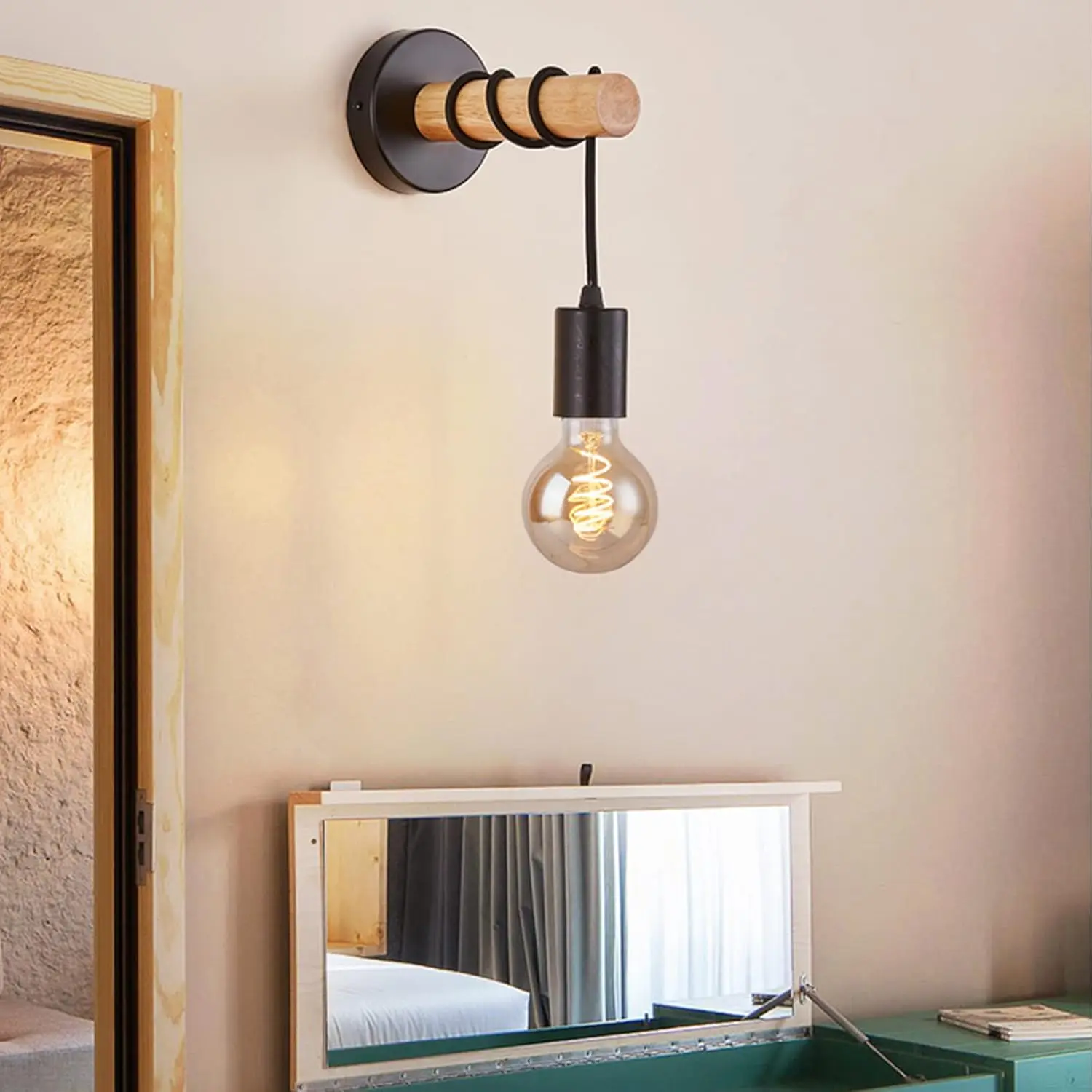 Modern Vintage E27 LED Bedside Lamp, Nordic Creative Wall Light, American Style Wooden Wall Sconce, Simple Hallway Balcony Lighting