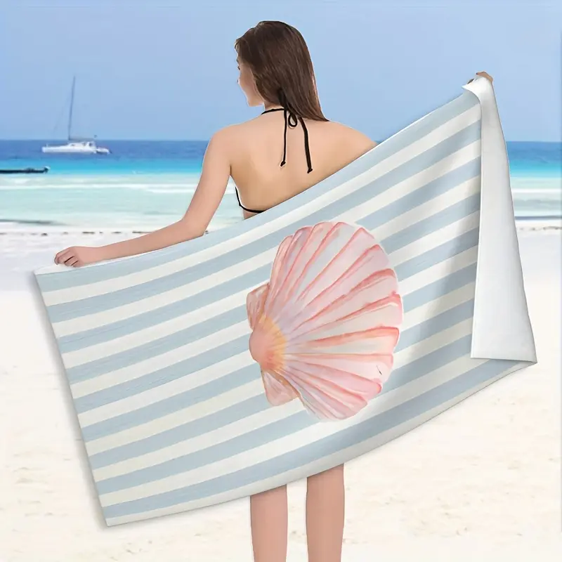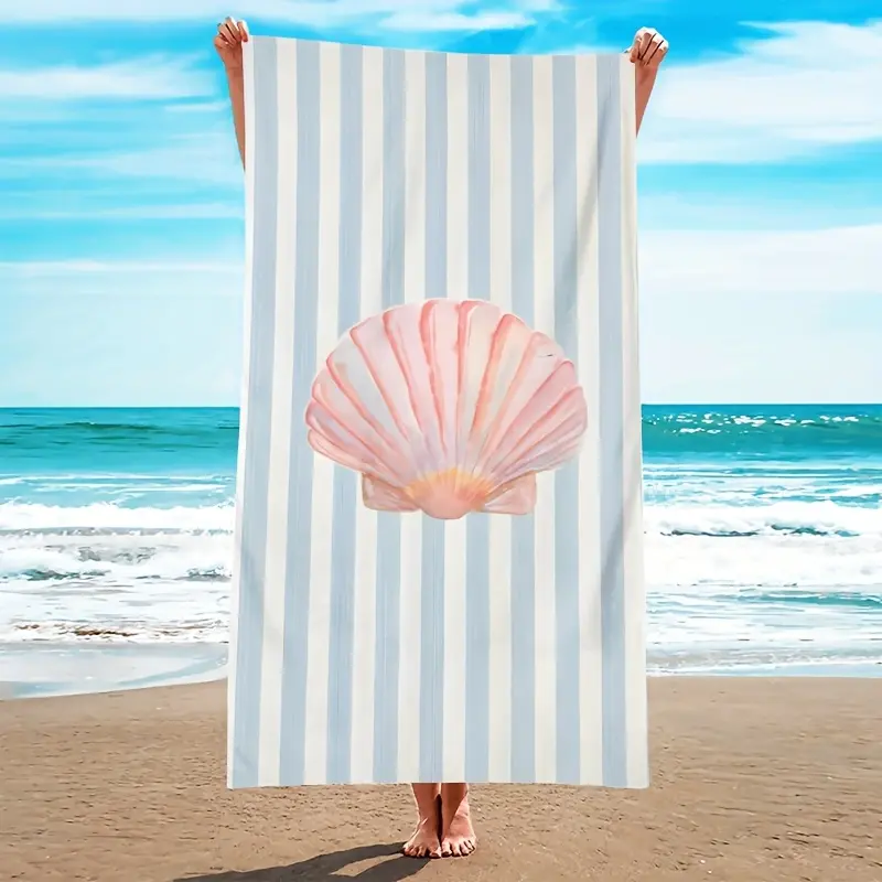 1pc Modern Creative Design Shell Pattern Beach Towel, Striped Background, Super Absorbent and Quick-Drying Swimming Towel, Lightweight and Soft Beach Blanket, Gift for Family and Friends, Suitable for Travel, Swimming, Camping, Yoga, Fitness, -2D