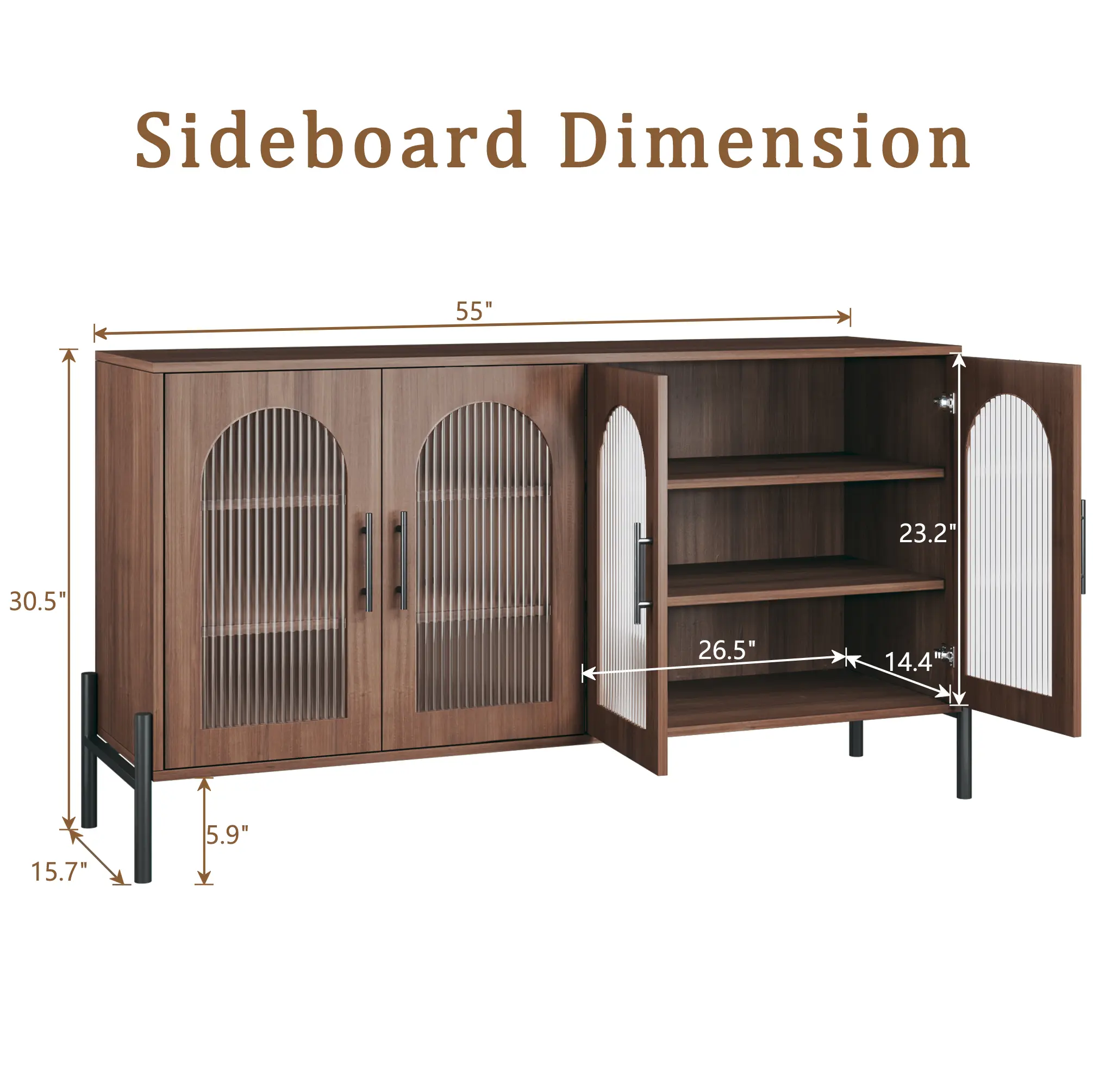 ·Modern Buffet Cabinet: This buffet cabinet with storage combines exquisite elegance with modern functionality. Its warm walnut finish and stylish fluted glass doors effortlessly enhance your decor, adding a refined, contemporary touch to dining rooms, kitchens, or living spaces