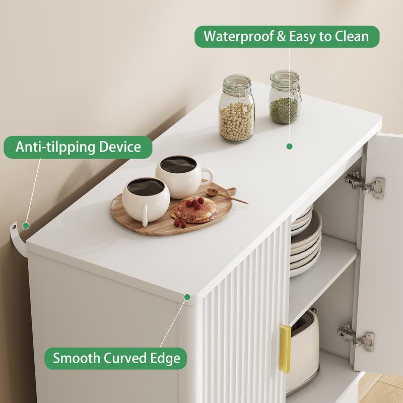·Modern Fluted Design for Stylish Homes: Buffet cabinet with storage features vertical fluted doors and sleek gold hardware for a modern, elegant look. Whether used as a sideboard, coffee bar cabinet, or bar cabinet, it adds decorative flair to your kitchen, dining room, or hallway.