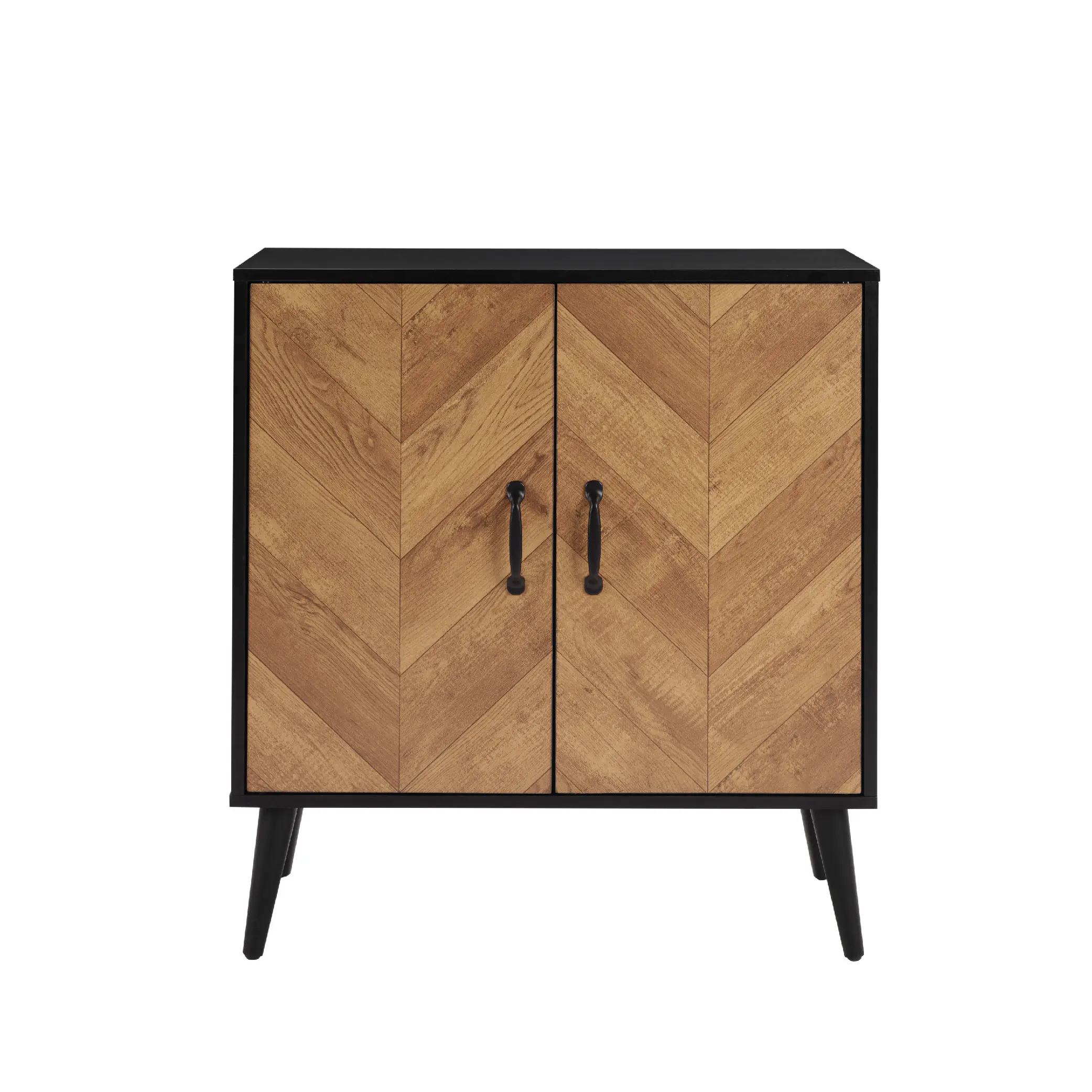 This storage cabinet with doors features a sleek wood grain finish and minimalist silhouette, perfect as a buffet sideboard in your dining room, an accent cabinet in your living room, or an organizer in your home office.