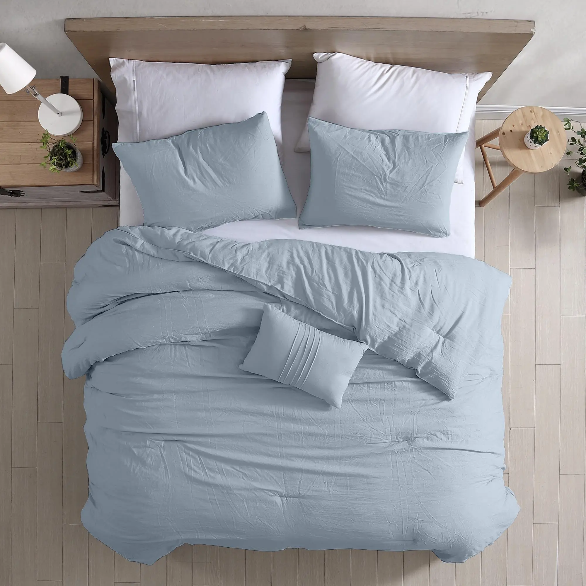 Modern Threads Beck 4-Piece Garment-Washed Comforter Set, Light Blue, Queen