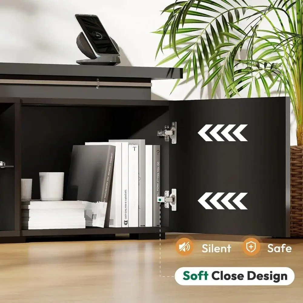 ·【Ample Storage Space】- TV stand for living room with 3 open compartments and 2 large cabinets. It provides ample storage for all your essentials. Whether it's your DVD collection, gaming equipment, PS5, electronics, books or magazines, you can easily organize and display them in this modern TV stand.
