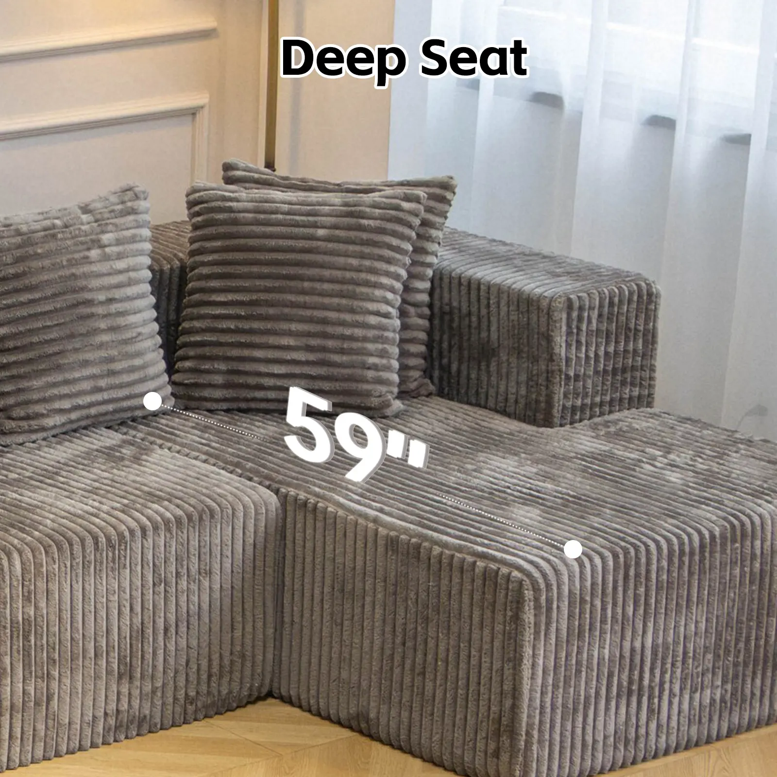 Deep Seating: "Extra-deep cushions for movie marathons, book binges, and serious lounging."