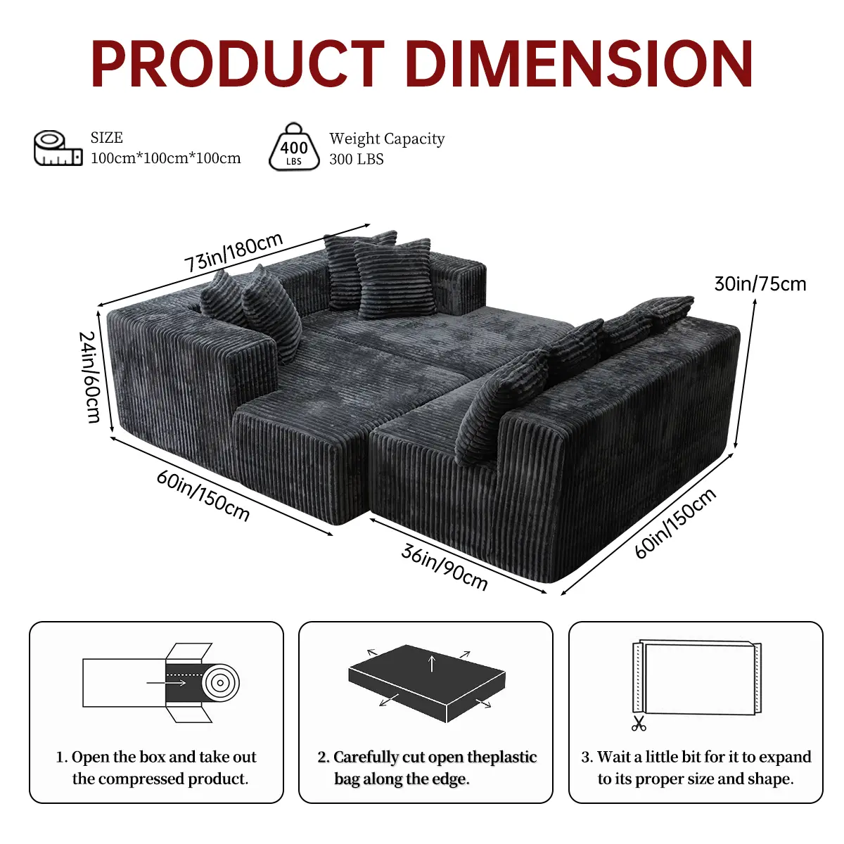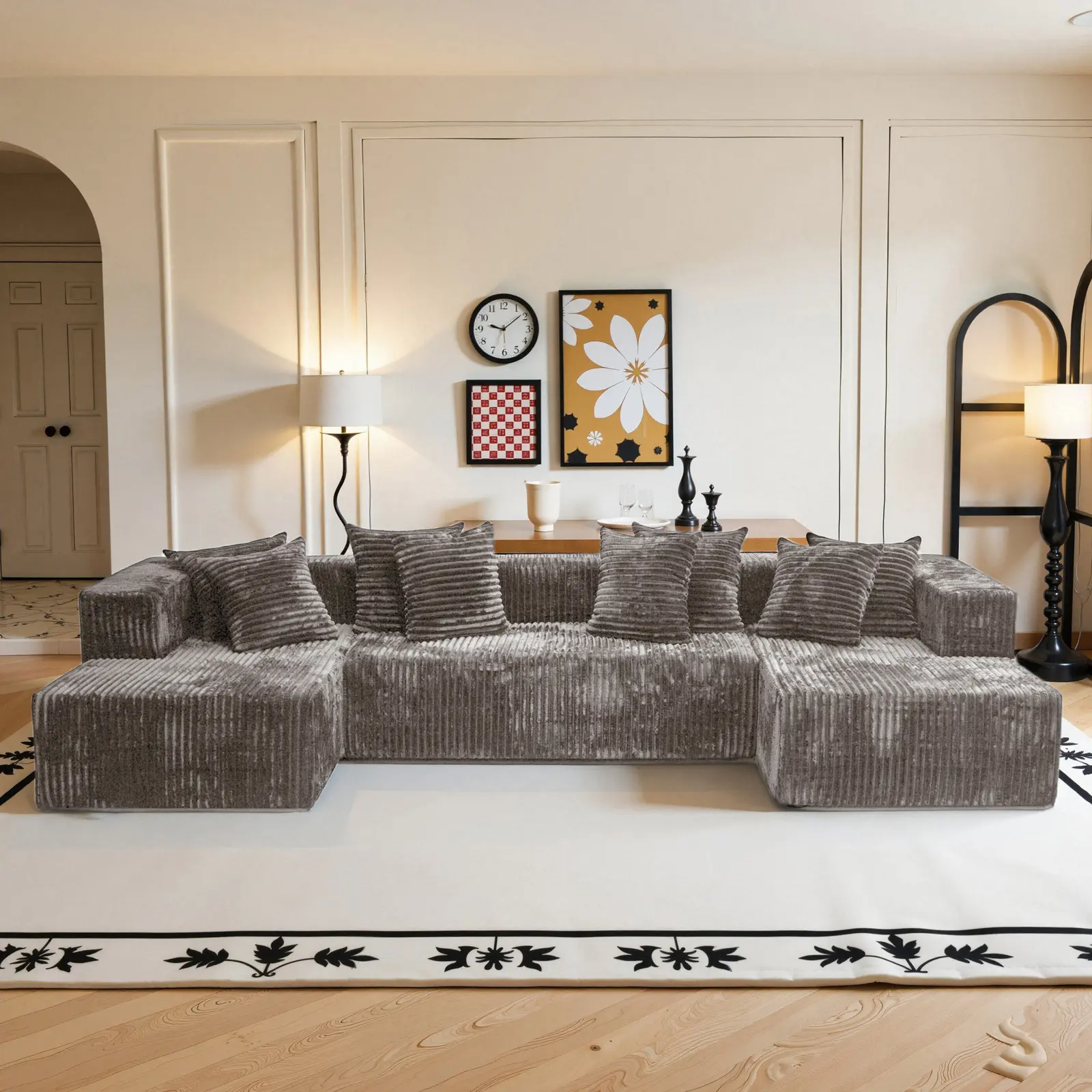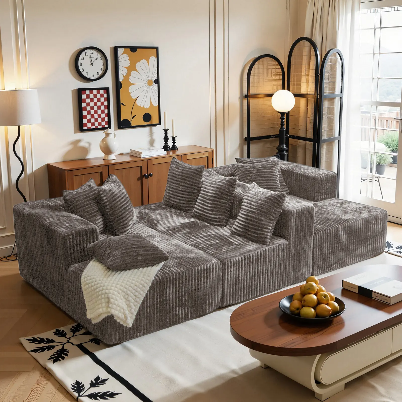 【3 Packages shipping】132"U-Shape Modular Sectional CouchSofa Compressed Corduroy Modern Sleeper Sofafor Living Room,Space-Efficient Modular FloorSofa with Soft Velvet Fabric and Deep SeatSofaConvertible Corduroy Sectional Couch bed plus