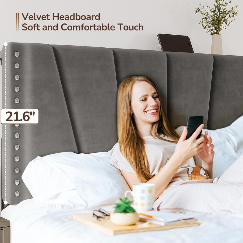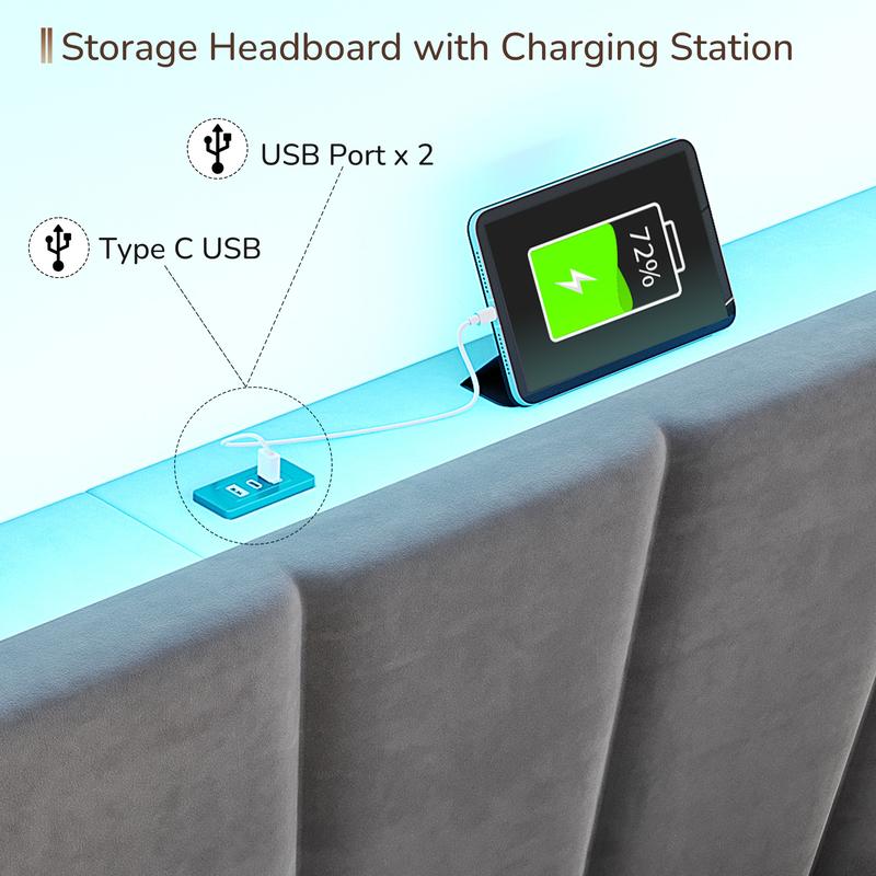 ·Storage Headboard with Charging Station: No worry about the low battery. Built-in AC outlets and USB port, let you charge within your reach. Besides, the top of the headboard leaves 4.7" storage space, making it convenient for you to place commonly used items, such as books, phones, cameras, etc.