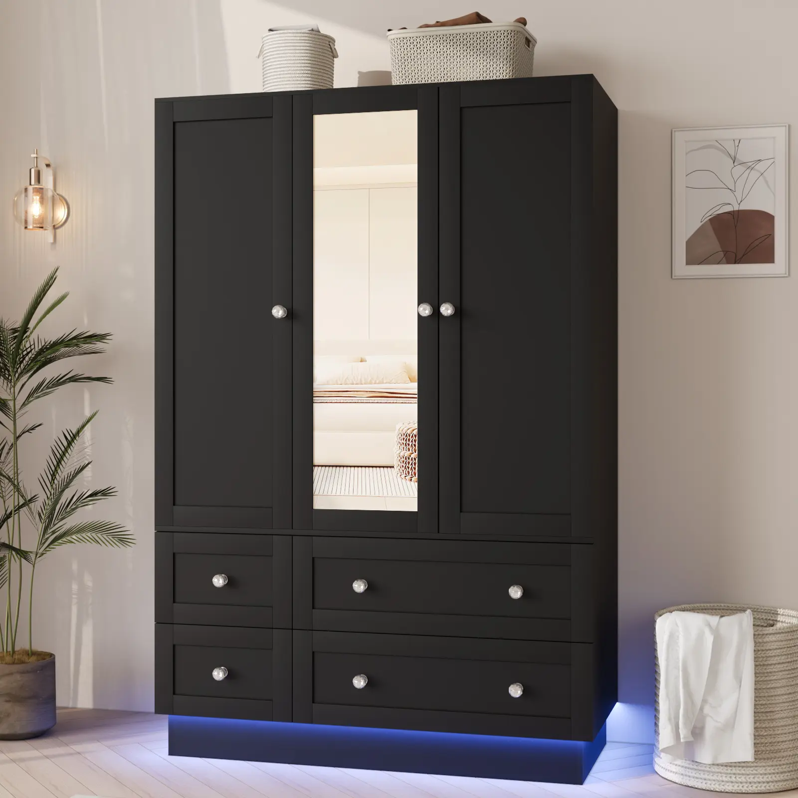 【2 Packages Delivery】VOWNER Bedroom Wardrobe with 3 Doors and 4 Drawers, Mirror, RGB Lights, Hanging Rod, Bedroom, Living Roo【2 Packages Delivery】VOWNER Bedroom Wardrobe with 3 Doors and 4 Drawers, Mirror, RGB Lights, Hanging Rod, Bedroom, Living Roo【2 Packages Delivery】VOWNER Bedroom Wardrobe with 3 Doors and 4 Drawers, Mirror, RGB Lights, Hanging Rod, Bedroom, Living Roo