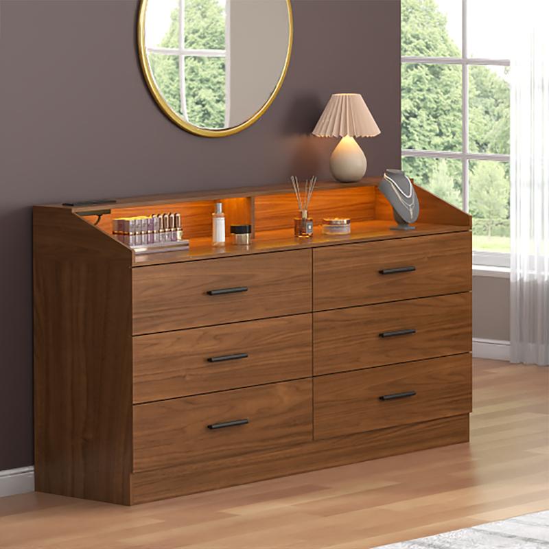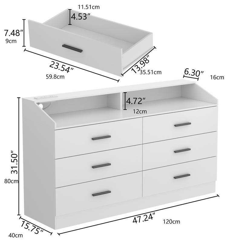 Built-in Power Outlet: This dresser offers the convenience of having a built-in power source right at your fingertips. With 2 AC sockets and 2 USB ports, you can easily connect and power up your electronic devices. The power outlet is strategically placed, allowing you to keep your workspace or living area neat and organized without the clutter of tangled cords. With this feature, you can easily create a functional and efficient environment that meets your electrical demands.