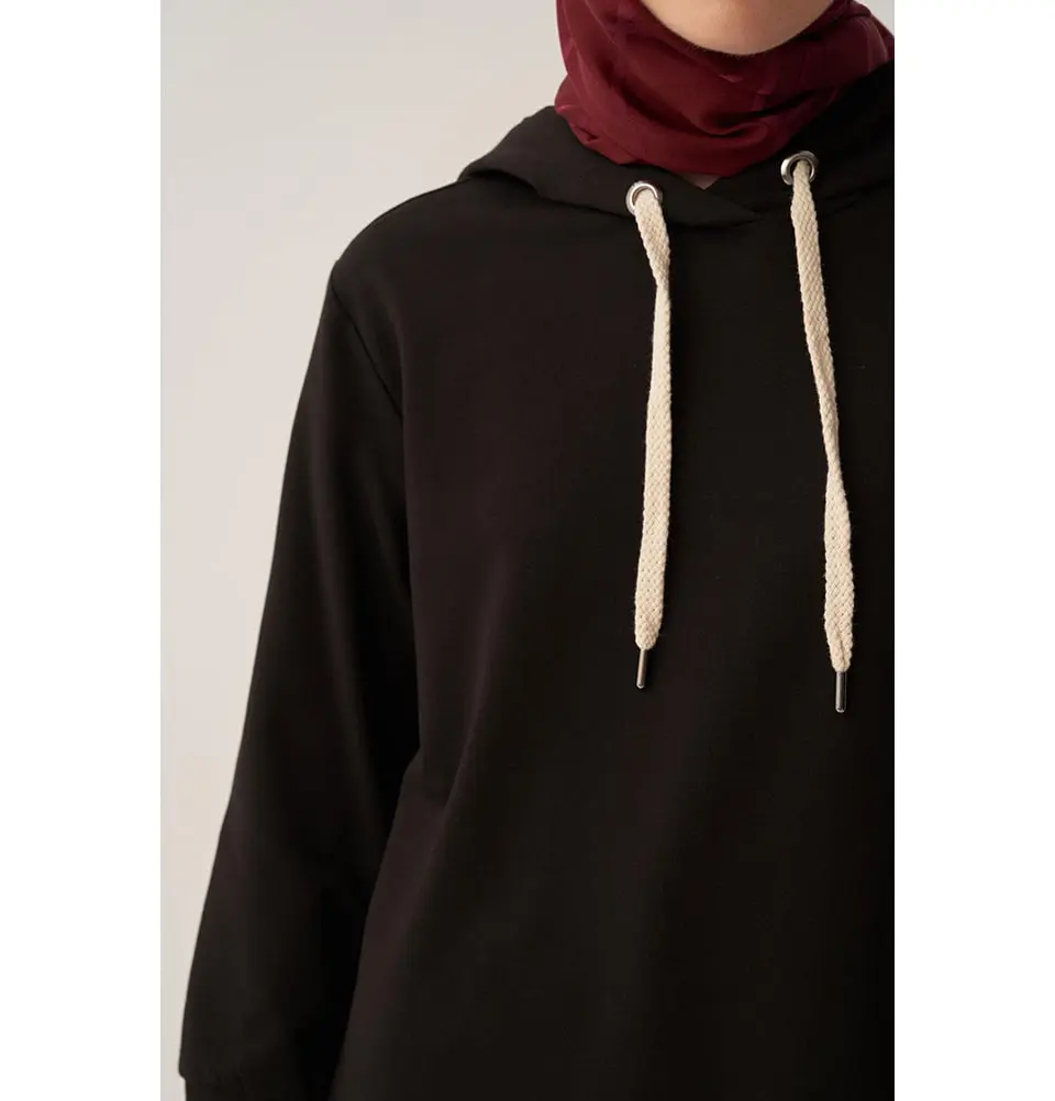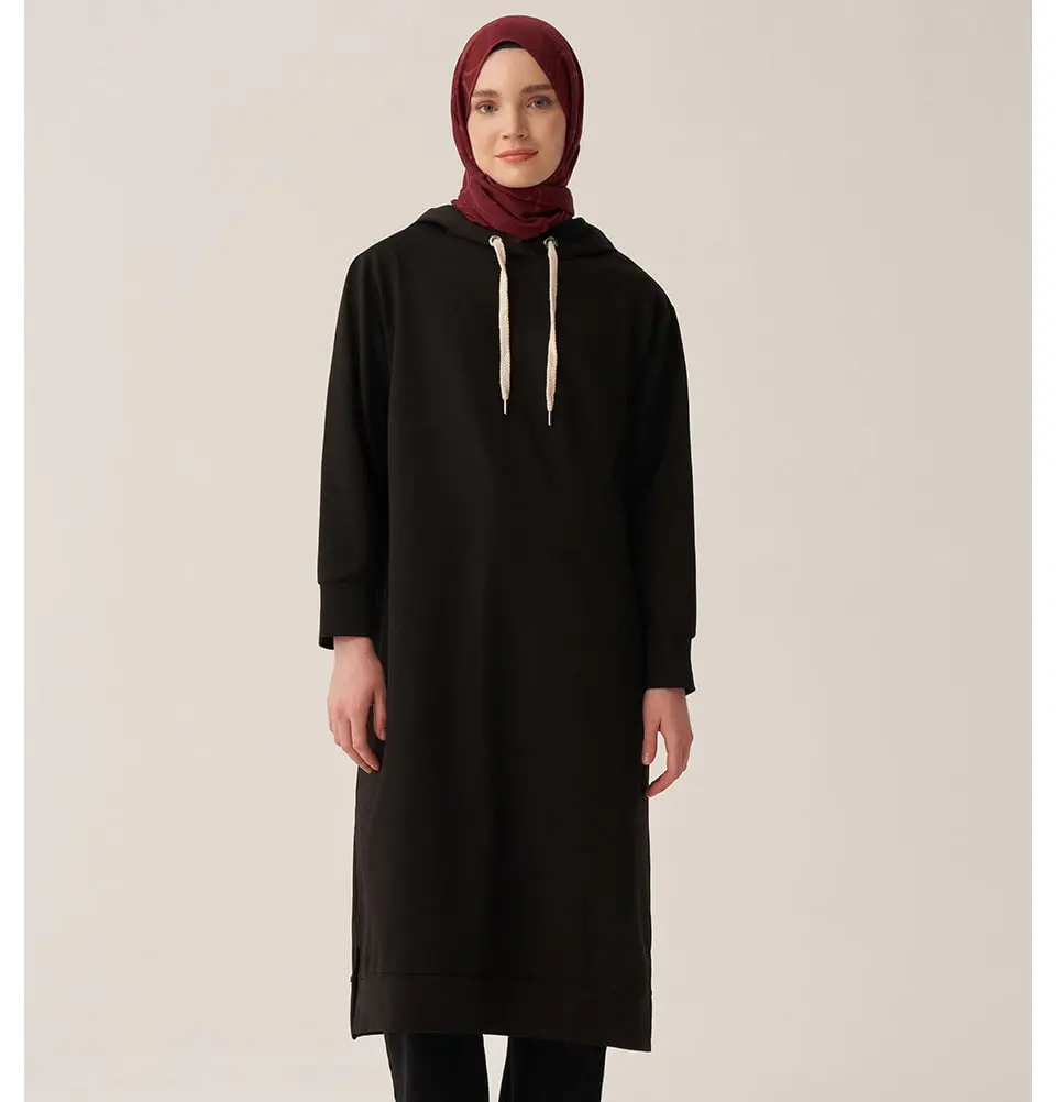 This Hooded Tunic is a versatile and comfortable wardrobe essential designed for everyday wear. The tunic features a relaxed silhouette and a long, modest length that provides coverage while maintaining a stylish and modern look. Its simple, clean lines make it easy to pair with leggings, jeans, or trousers for casual outings, travel, or daily errands. The attached hood adds a sporty, cozy touch, perfect for transitional weather.