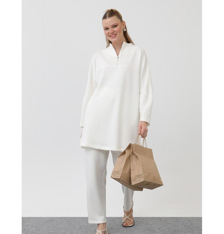 Modest Muslim Women's 1/4 Zip Pullover - 10611 Ecru