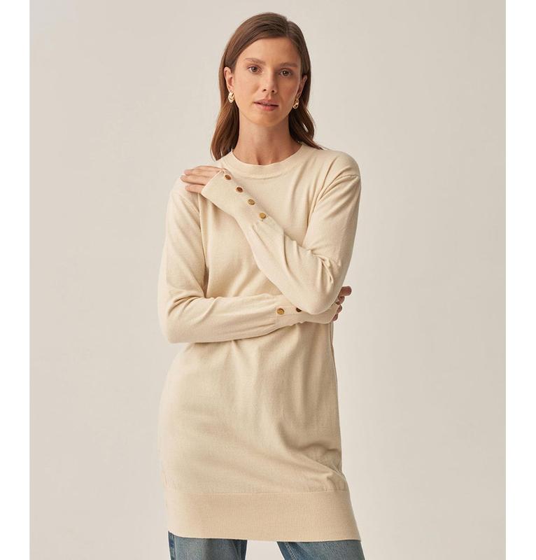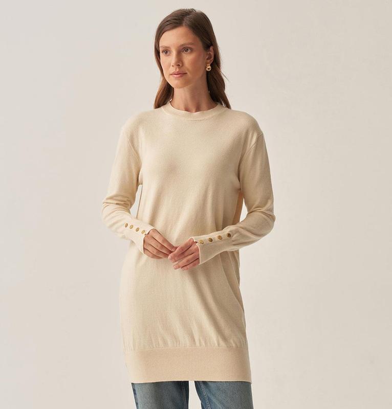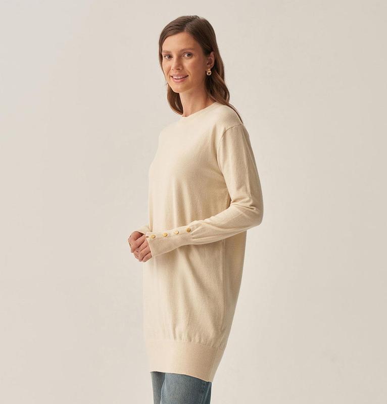 Modest Muslim Women's Ankle Button Cuff Sweater - 55021 Beige