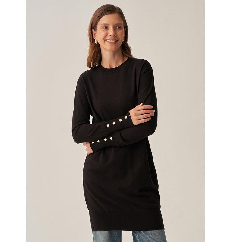 Modest Muslim Women's Ankle Button Cuff Sweater - 55021 Black